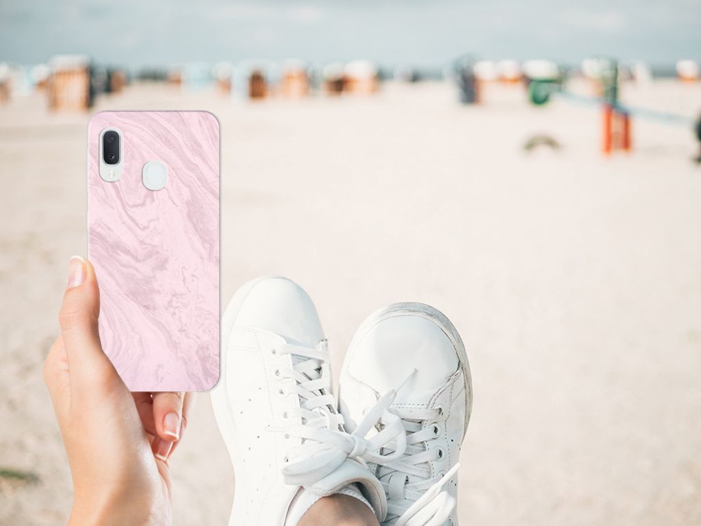 Samsung Galaxy A20e TPU Siliconen Hoesje Marble Pink - Origineel Cadeau Vriendin