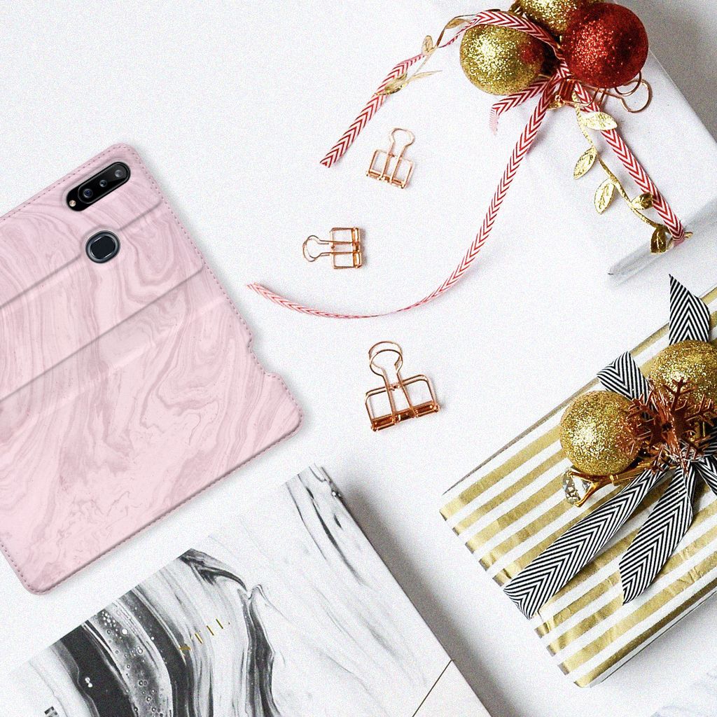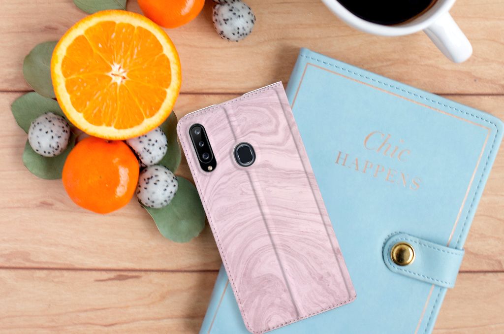 Samsung Galaxy A20s Standcase Marble Pink - Origineel Cadeau Vriendin