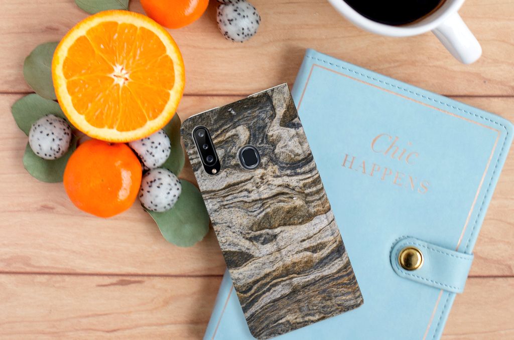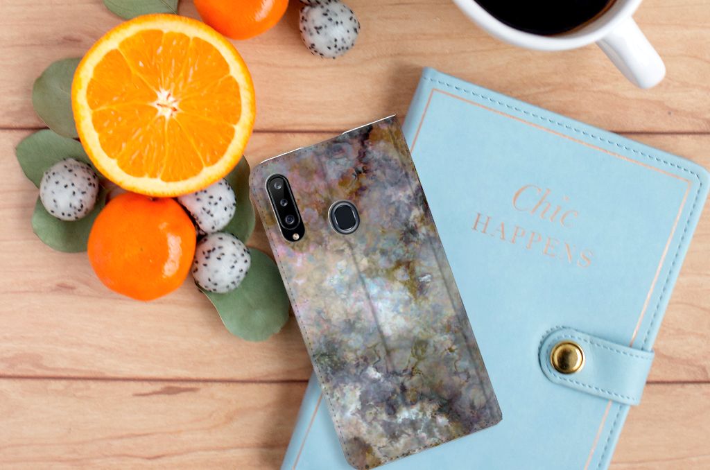 Samsung Galaxy A20s Bookcase Marmer Bruin