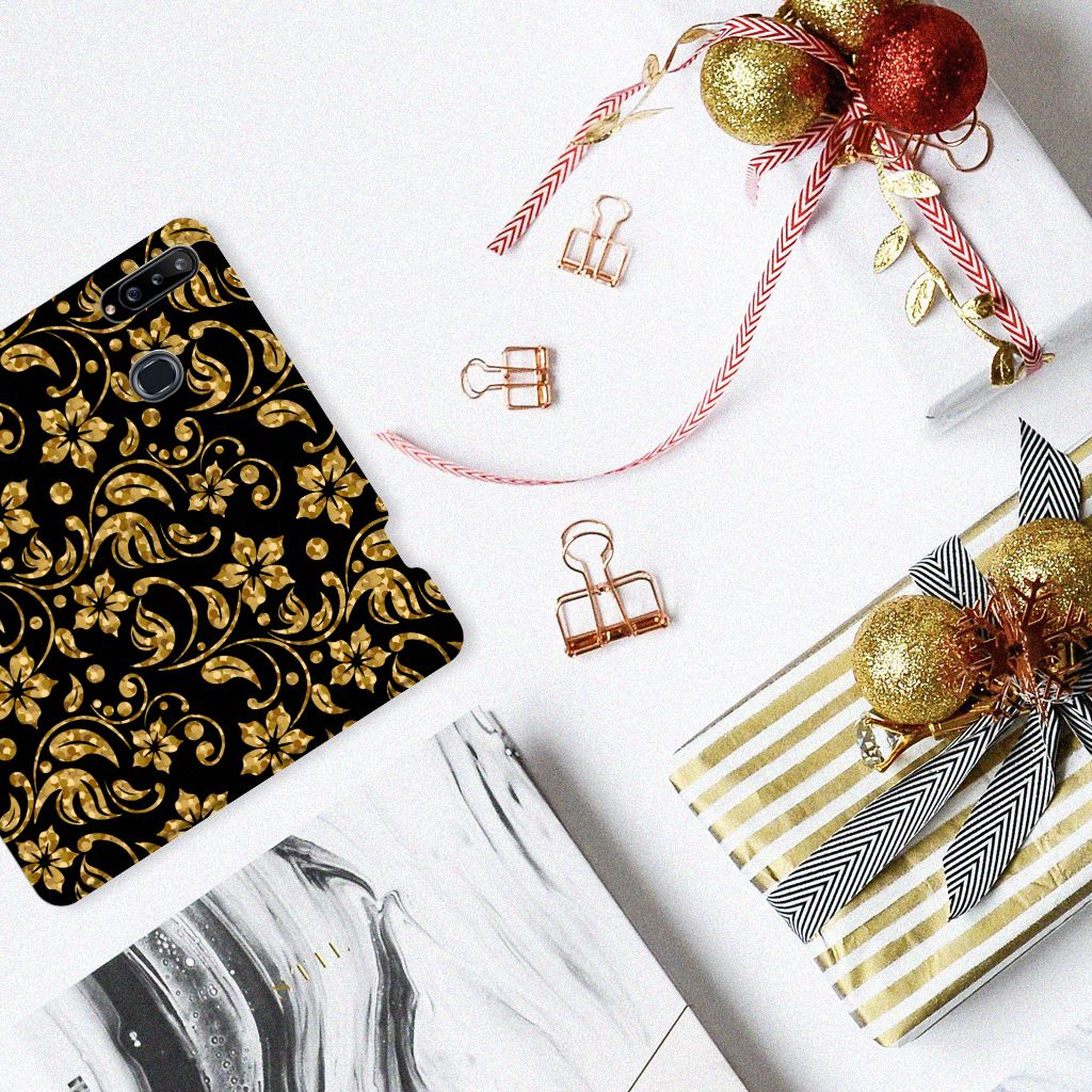 Samsung Galaxy A20s Smart Cover Gouden Bloemen