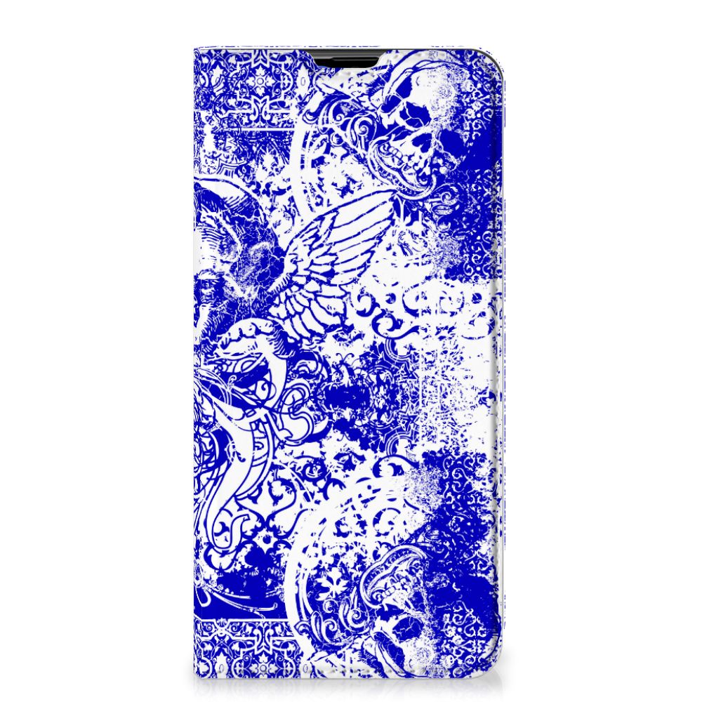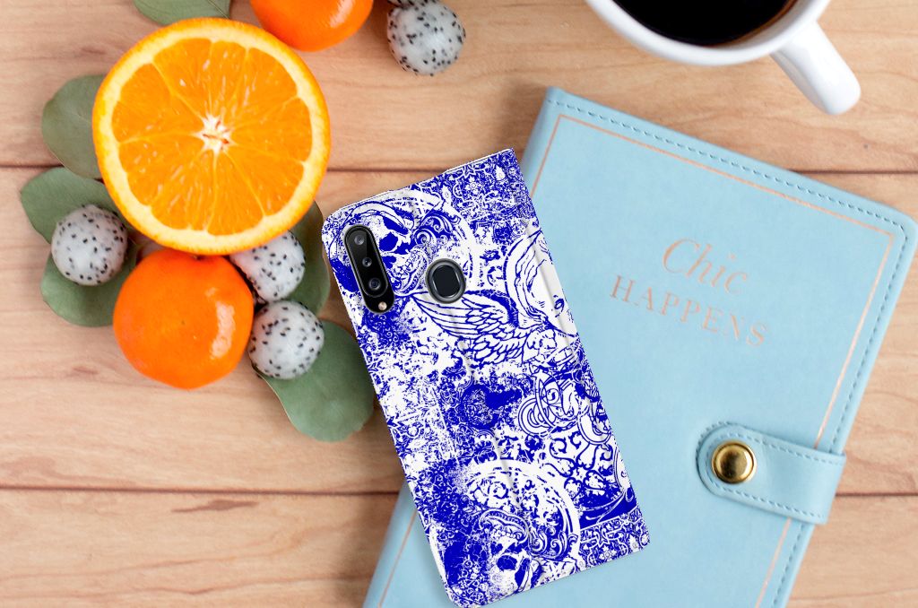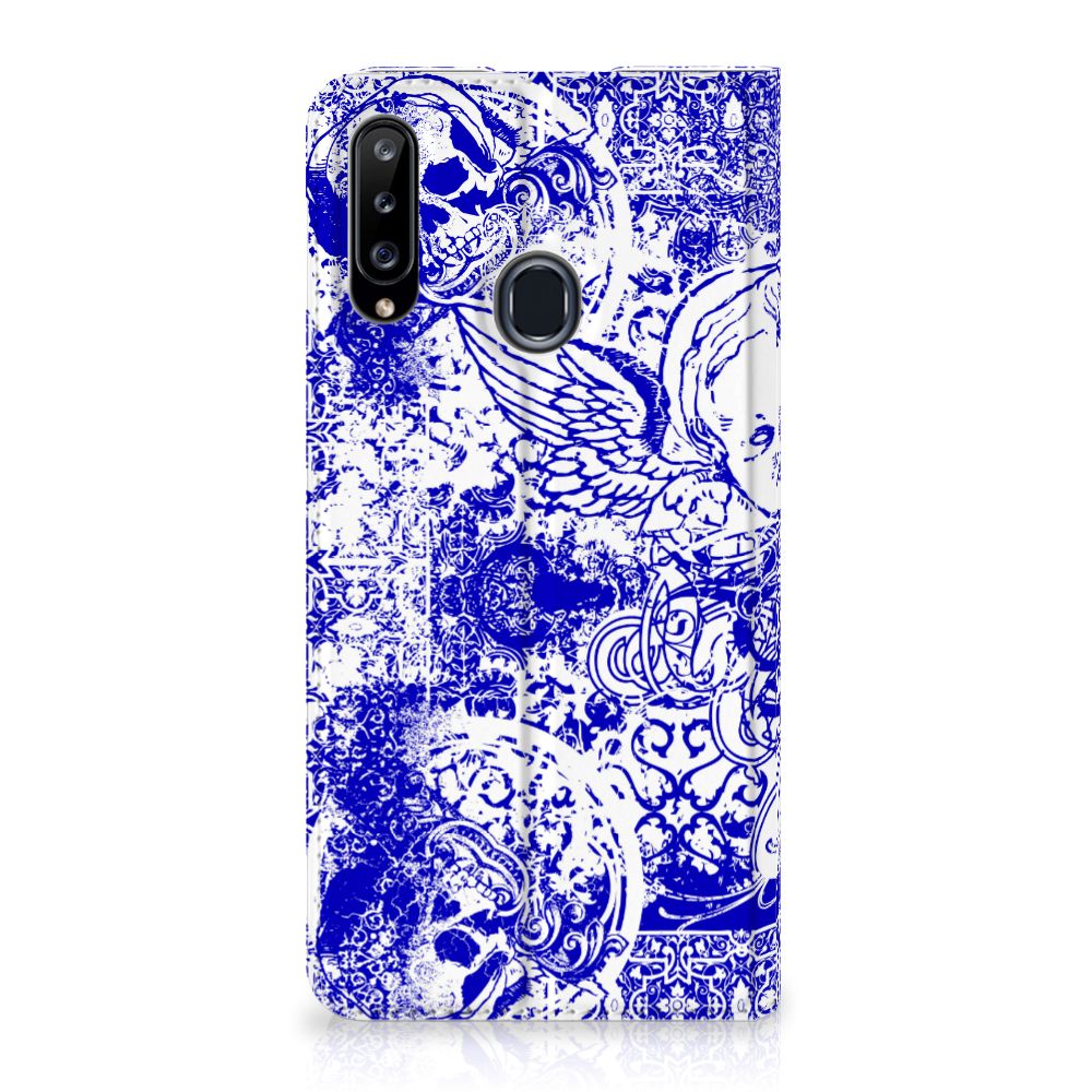 Mobiel BookCase Samsung Galaxy A20s Angel Skull Blauw