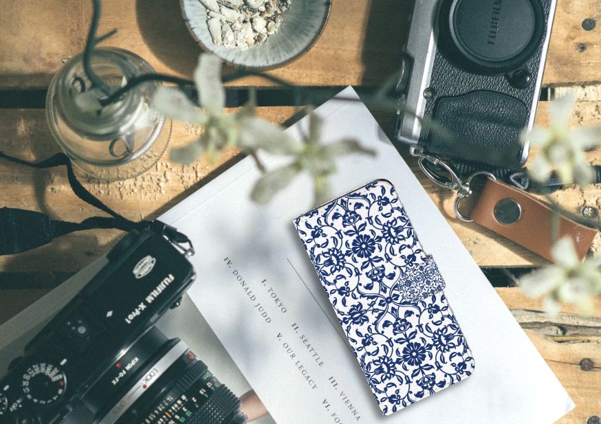 Samsung Galaxy A20s Portemonnee Hoesje Flowers Blue DTMP