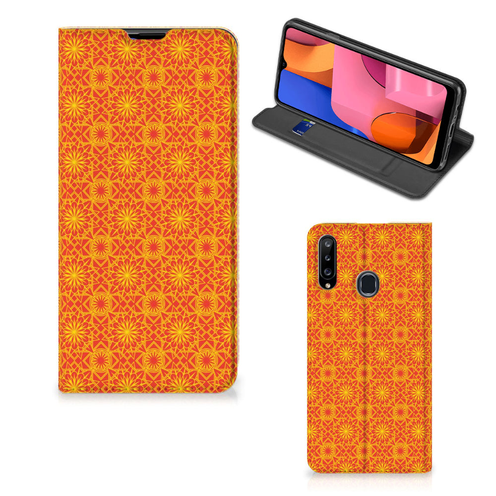 Samsung Galaxy A20s Hoesje met Magneet Batik Oranje