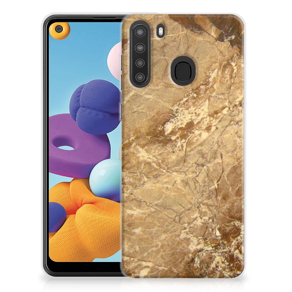 Samsung Galaxy A21 TPU Siliconen Hoesje Marmer Bruin