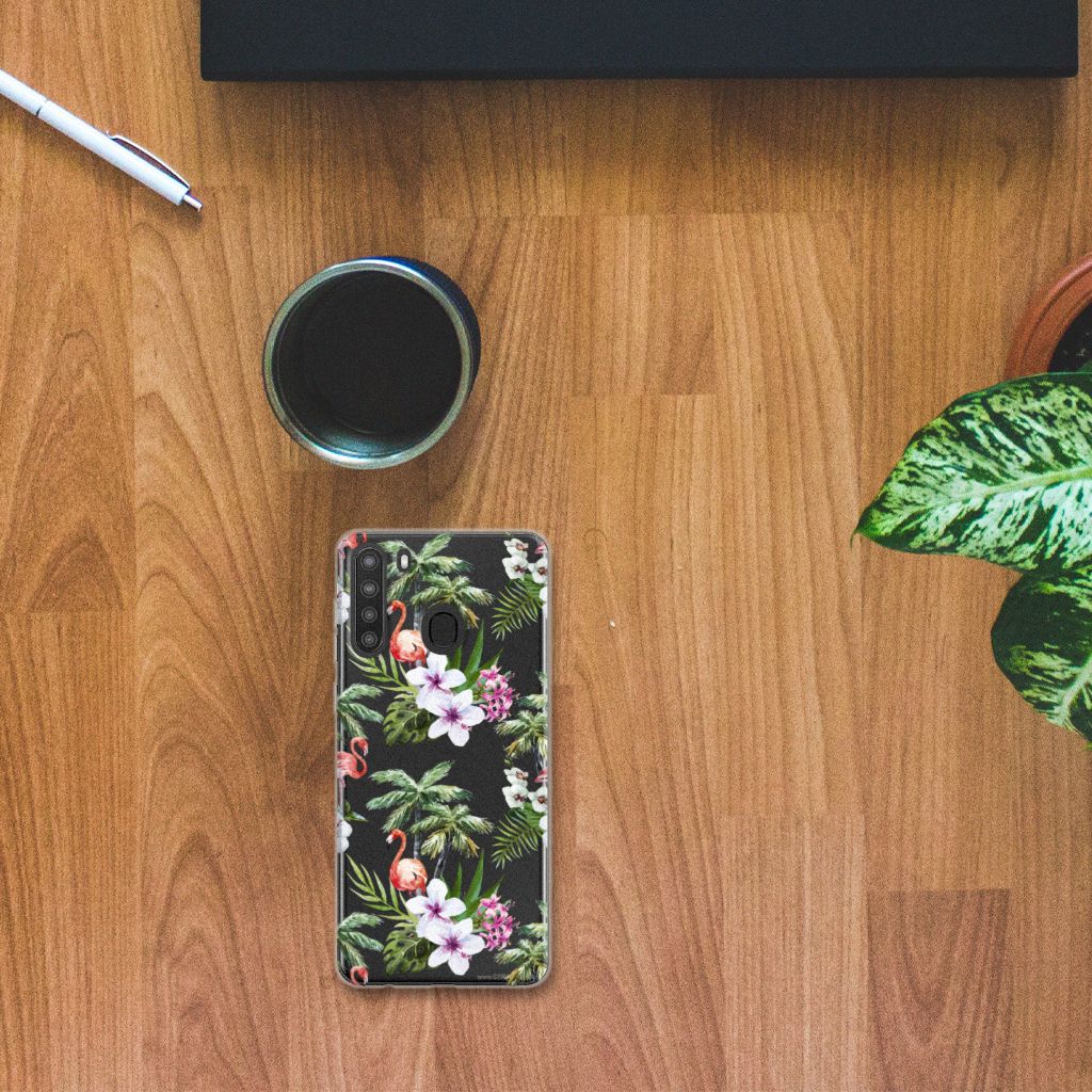 Samsung Galaxy A21 TPU Hoesje Flamingo Palms