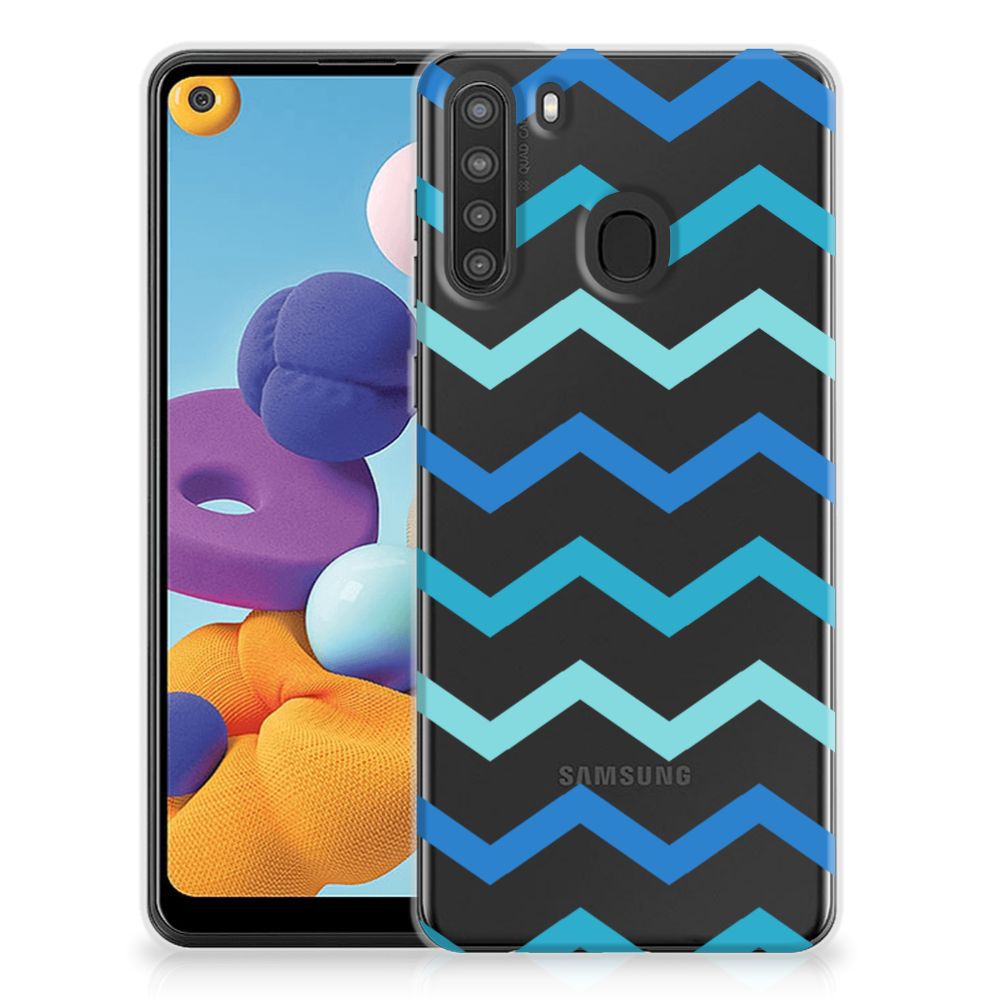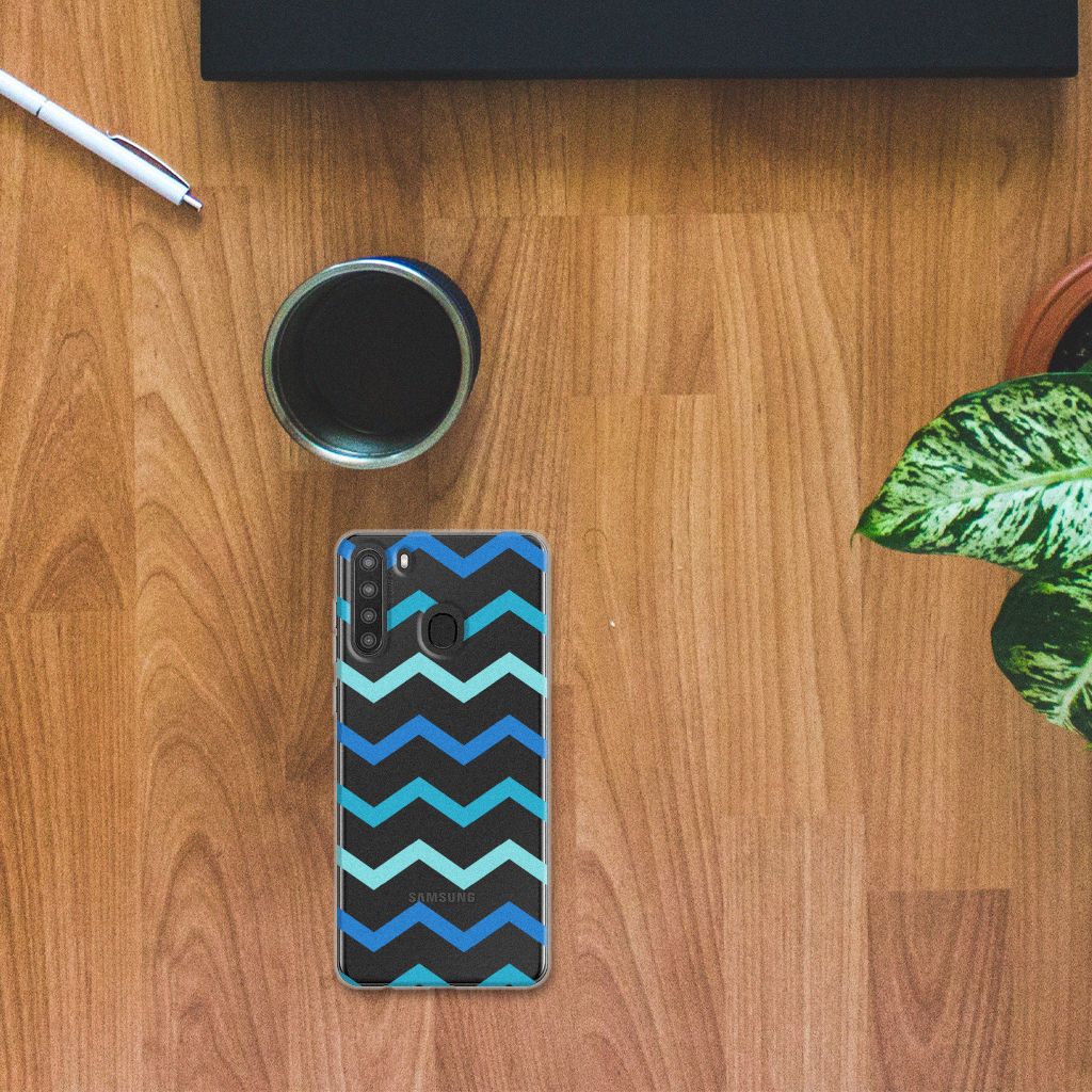 Samsung Galaxy A21 TPU bumper Zigzag Blauw