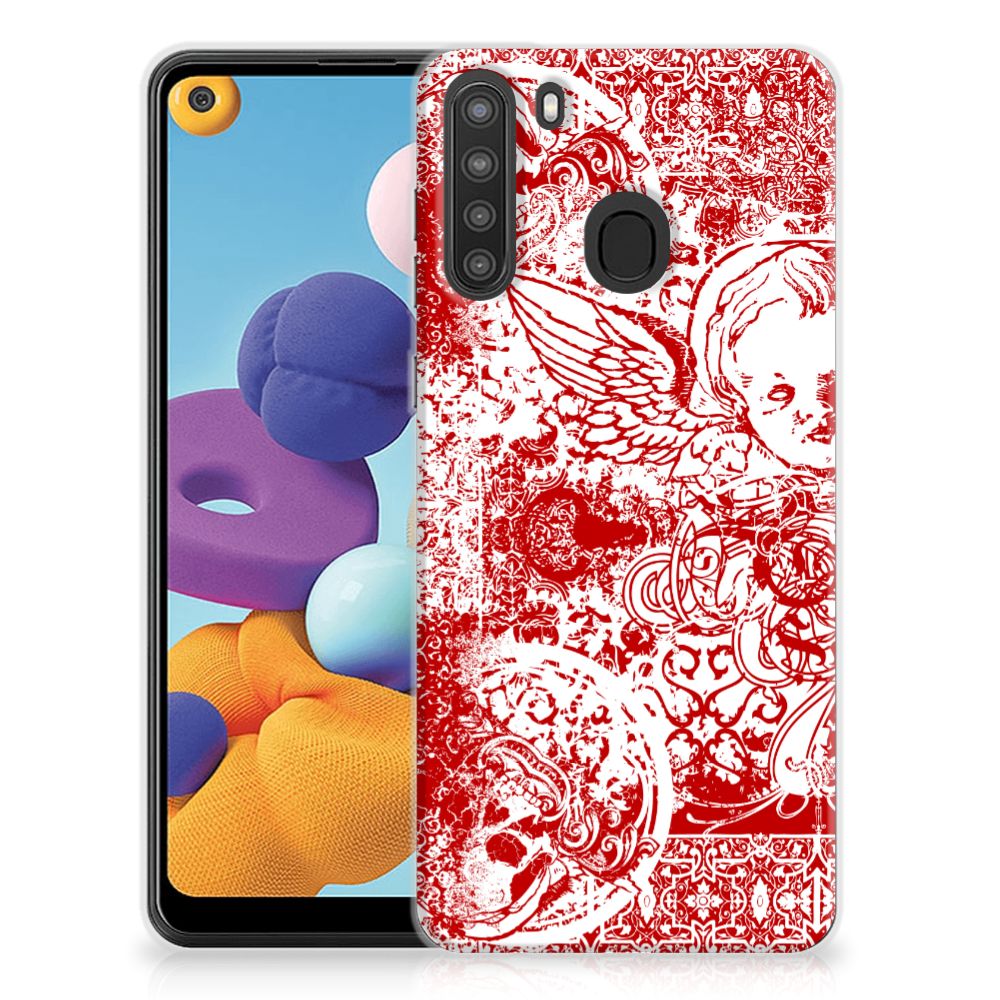 Silicone Back Case Samsung Galaxy A21 Angel Skull Rood
