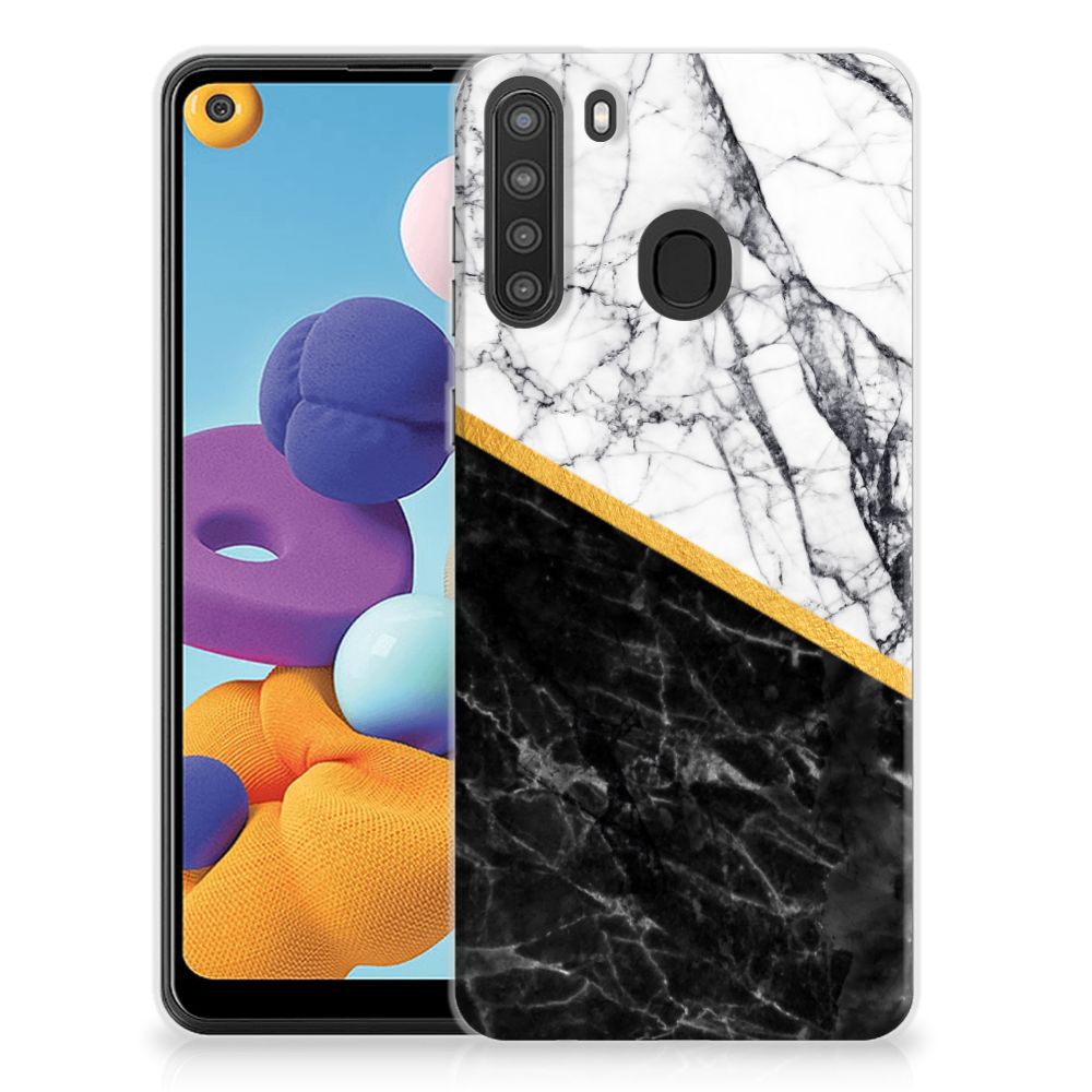 Samsung Galaxy A21 TPU Siliconen Hoesje Marmer Wit Zwart - Origineel Cadeau Man