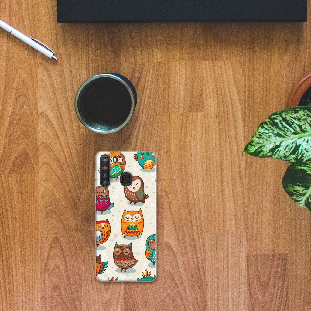 Samsung Galaxy A21 TPU Hoesje Vrolijke Uilen