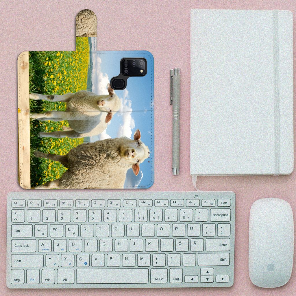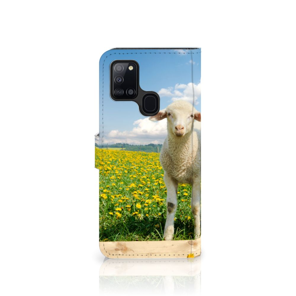 Samsung Galaxy A21s Telefoonhoesje met Pasjes Schaap en Lammetje