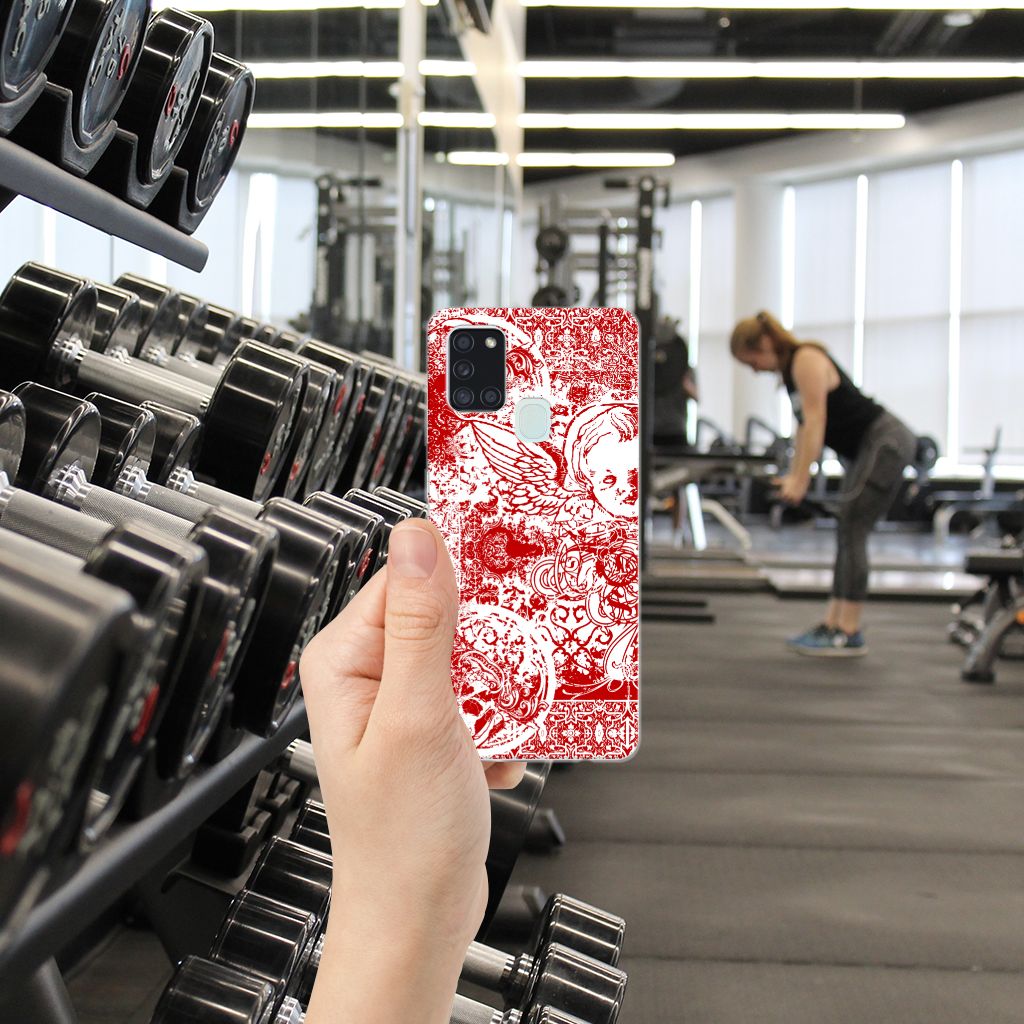 Silicone Back Case Samsung Galaxy A21s Angel Skull Rood
