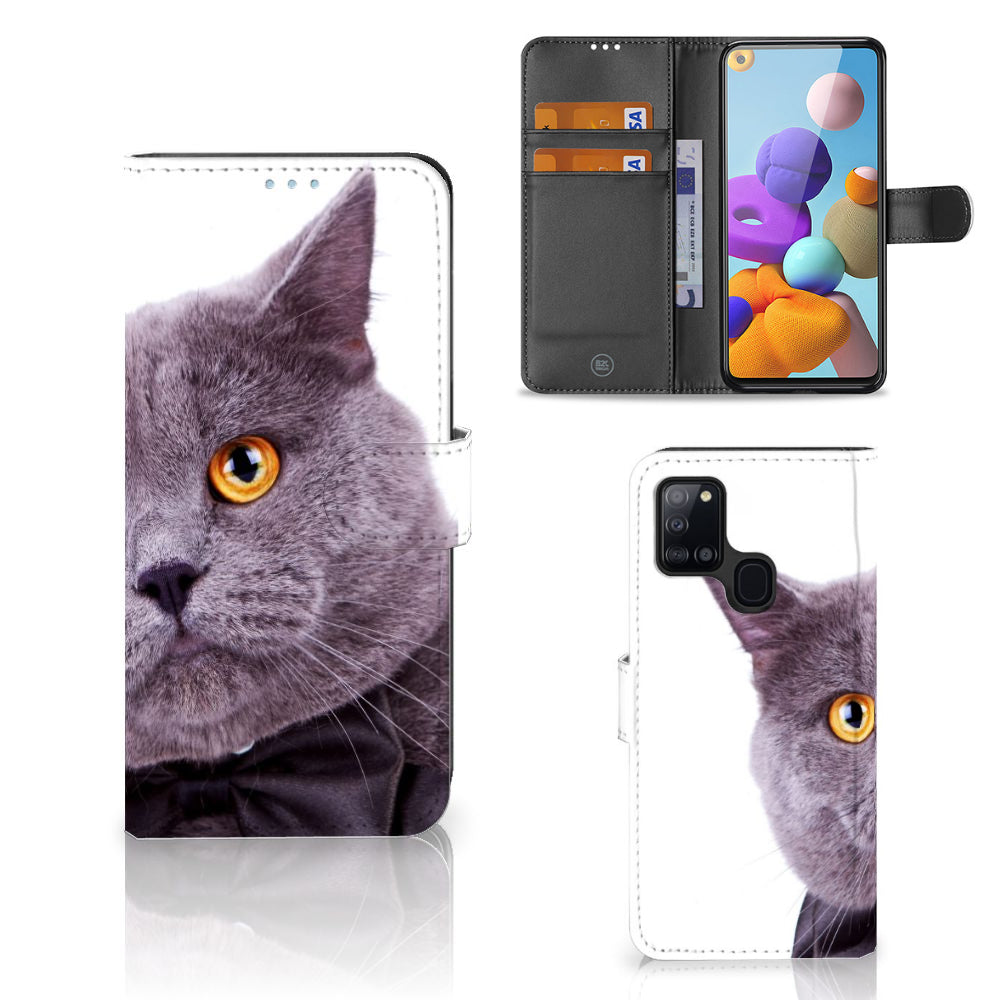 Samsung Galaxy A21s Telefoonhoesje met Pasjes Kat