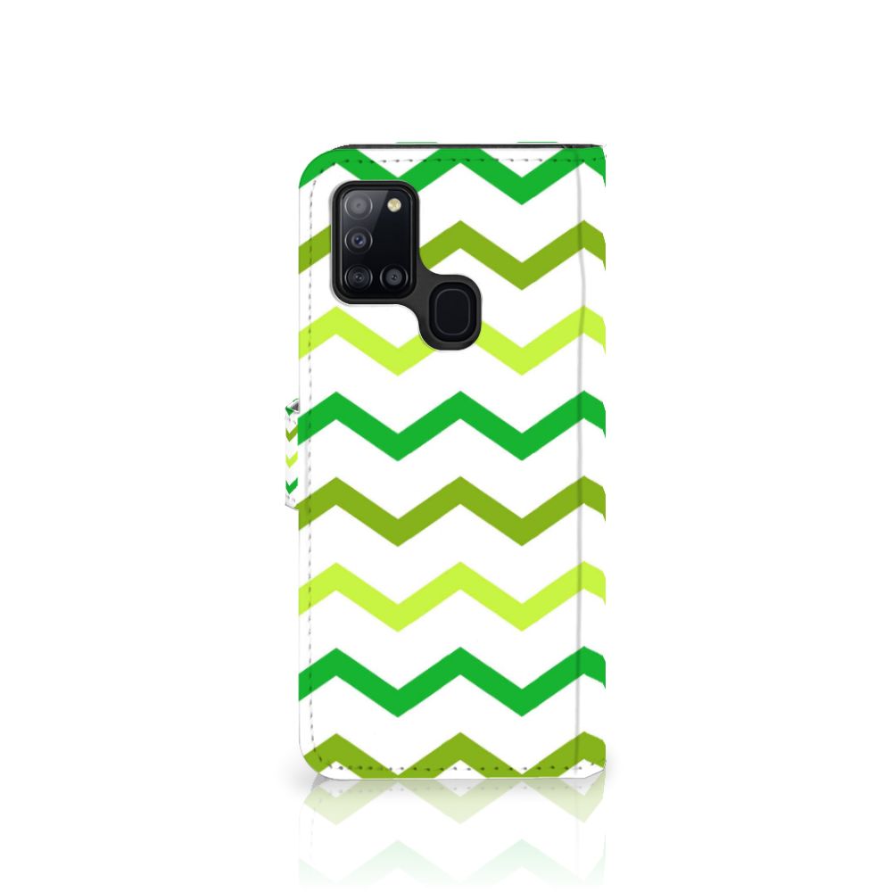 Samsung Galaxy A21s Telefoon Hoesje Zigzag Groen