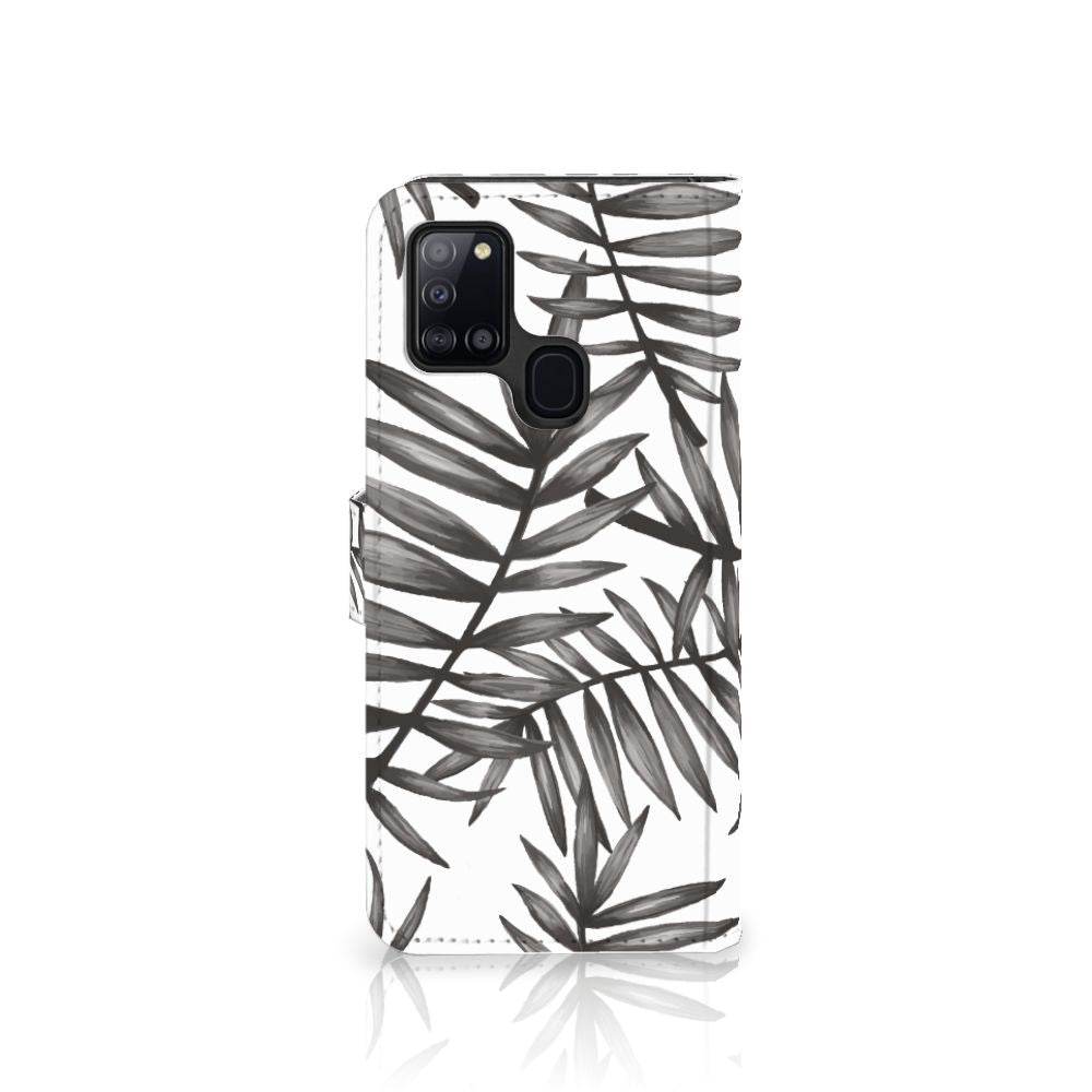 Samsung Galaxy A21s Hoesje Leaves Grey