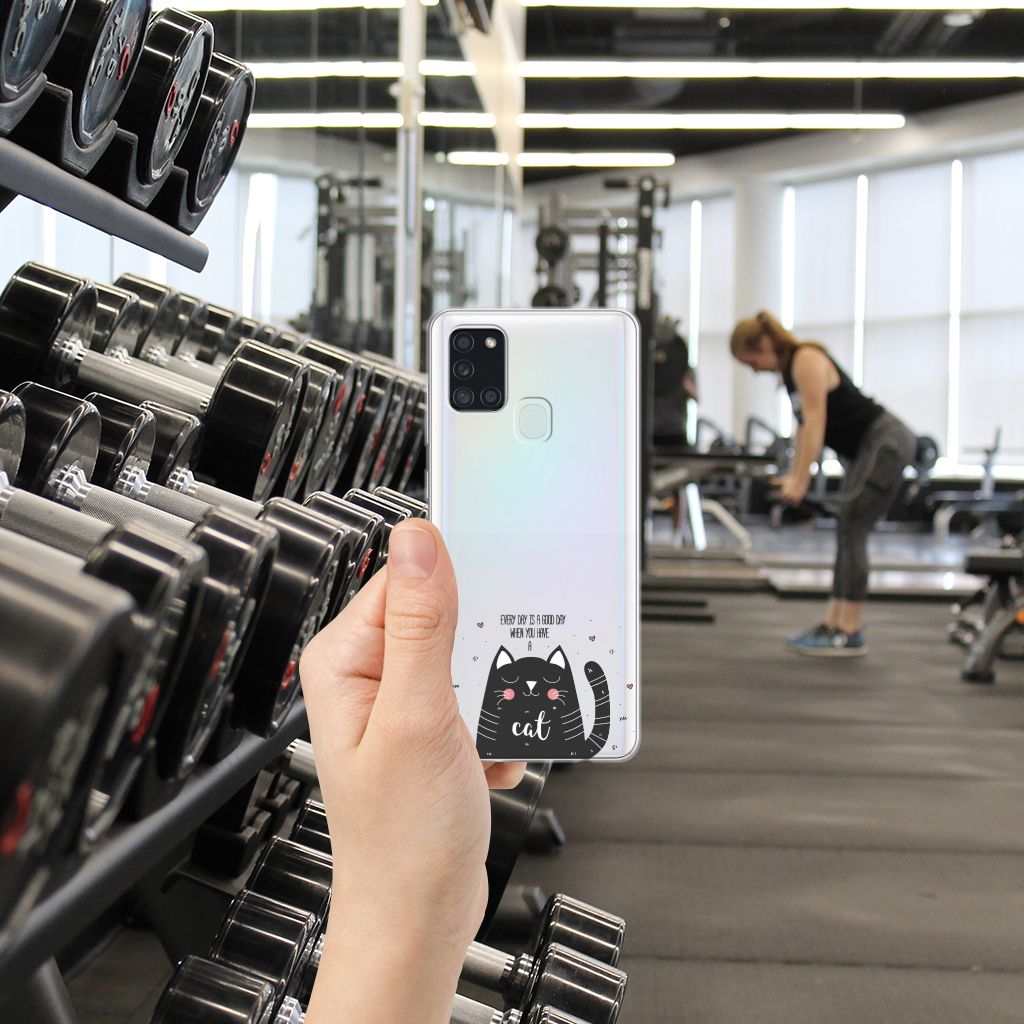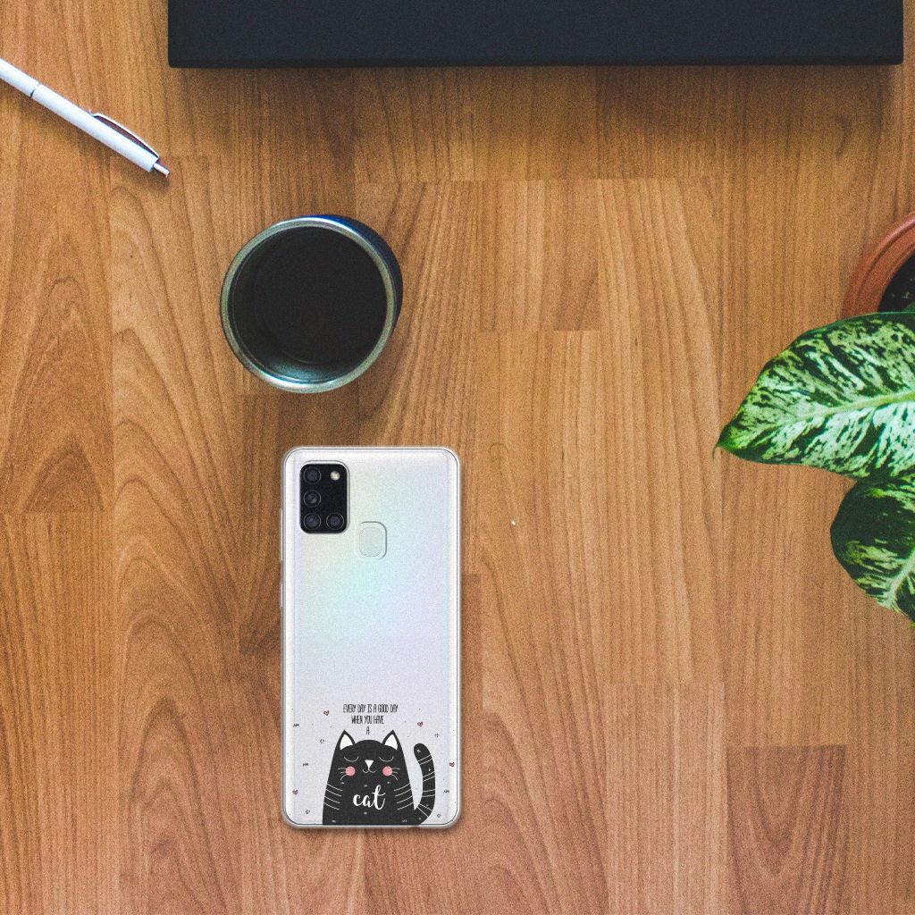 Samsung Galaxy A21s Telefoonhoesje met Naam Cat Good Day