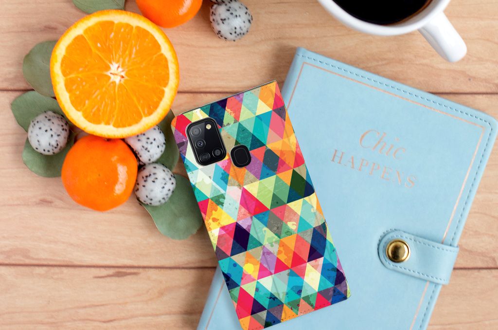 Samsung Galaxy A21s Hoesje met Magneet Geruit