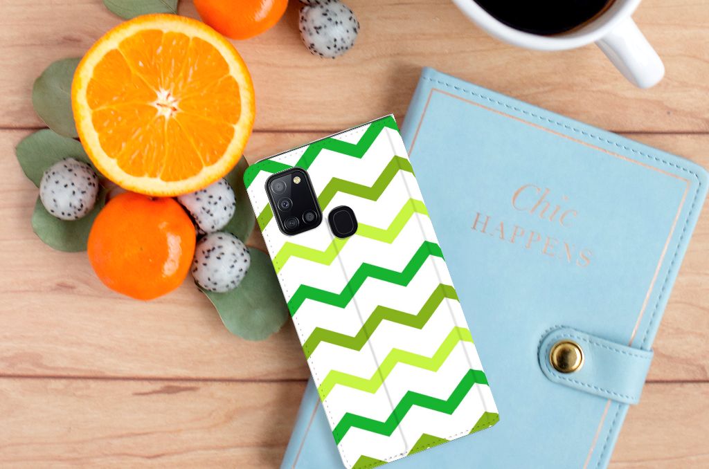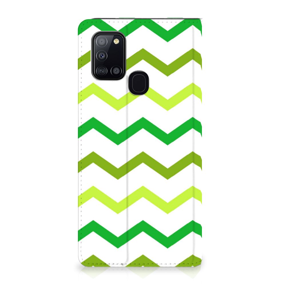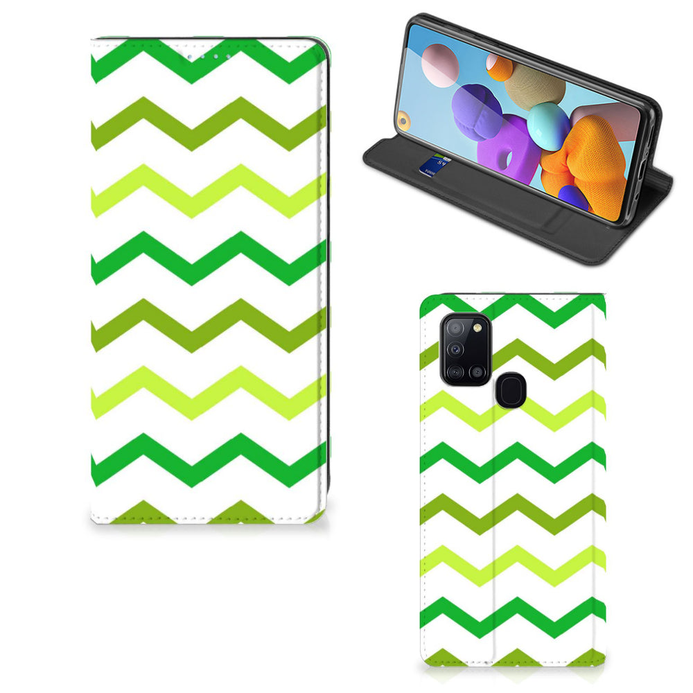 Samsung Galaxy A21s Hoesje met Magneet Zigzag Groen
