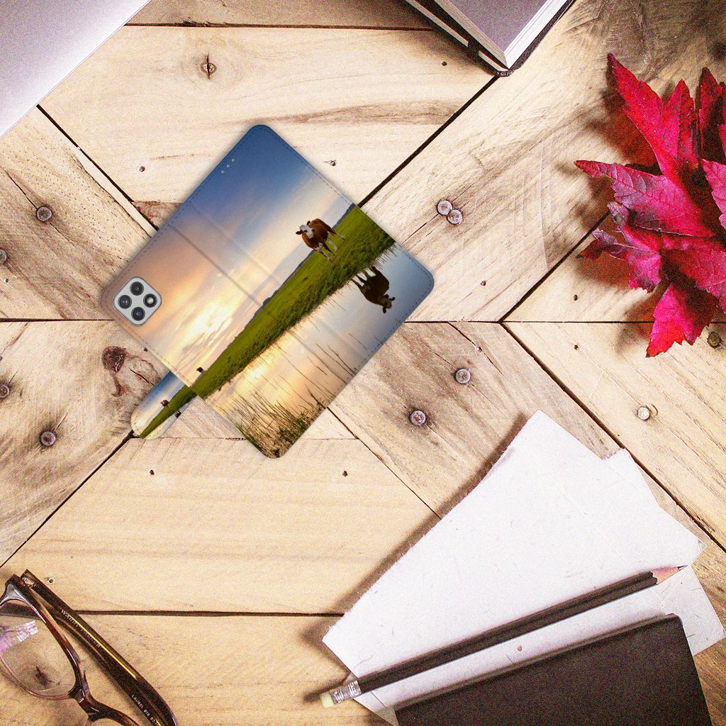 Samsung Galaxy A22 5G Telefoonhoesje met Pasjes Koe