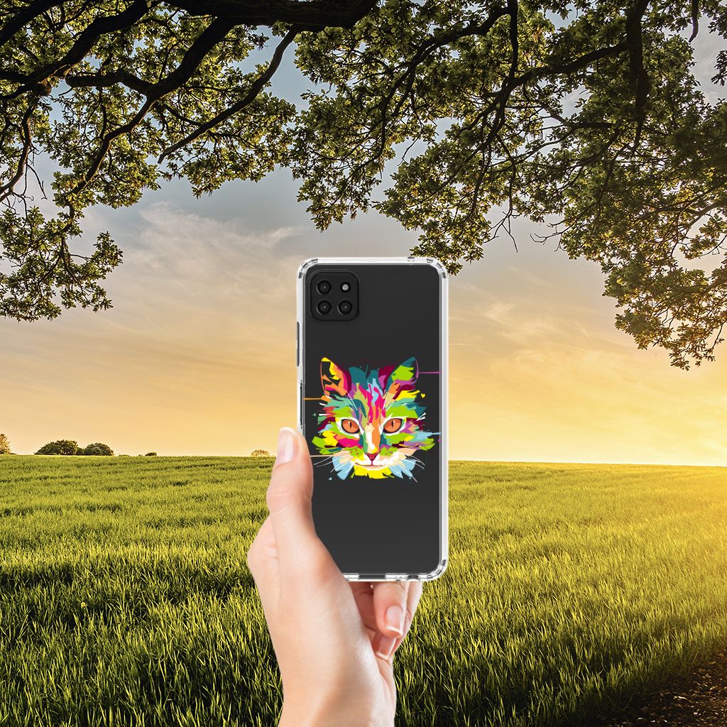 Samsung Galaxy A22 5G Stevig Bumper Hoesje Cat Color