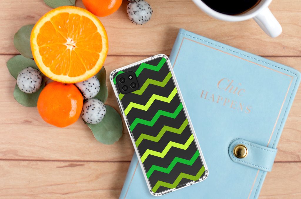 Samsung Galaxy A22 5G Doorzichtige Silicone Hoesje Zigzag Groen