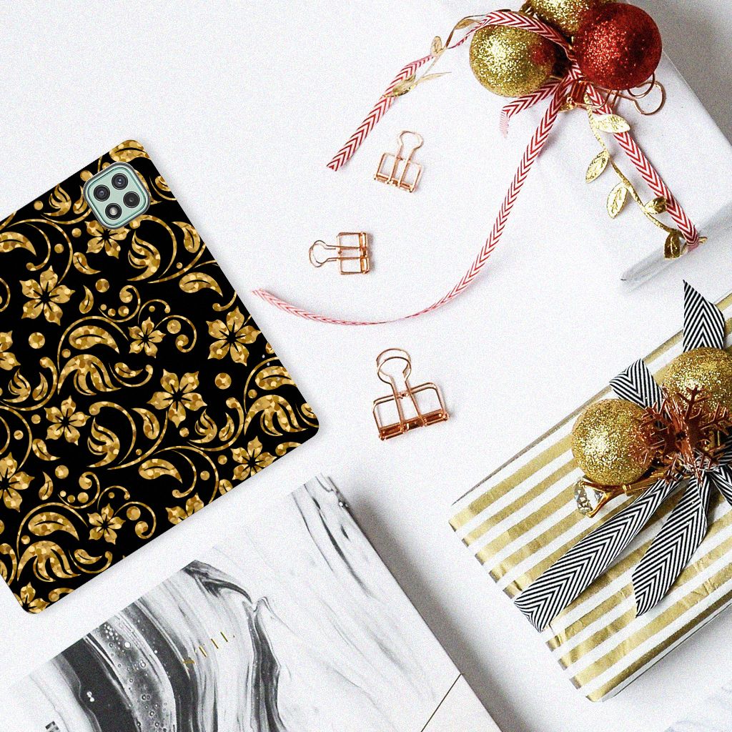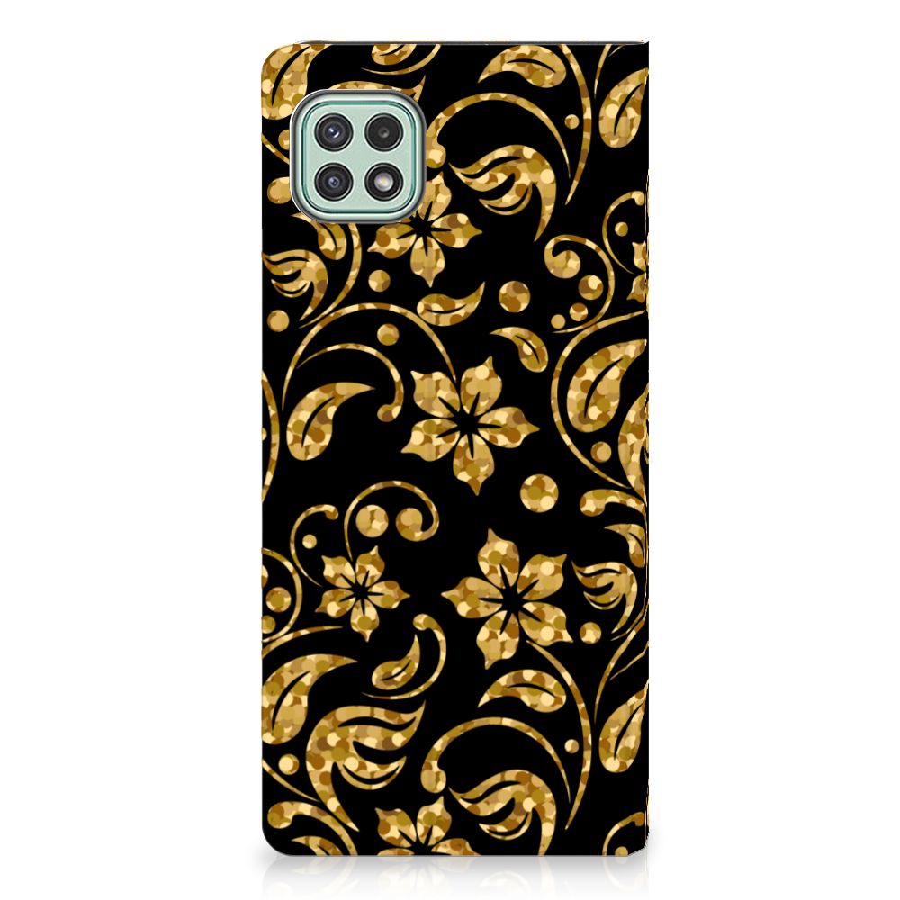 Samsung Galaxy A22 5G Smart Cover Gouden Bloemen