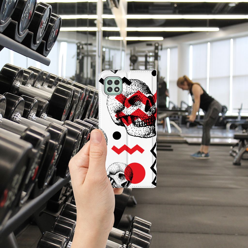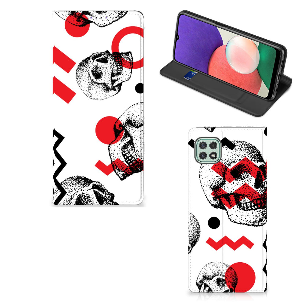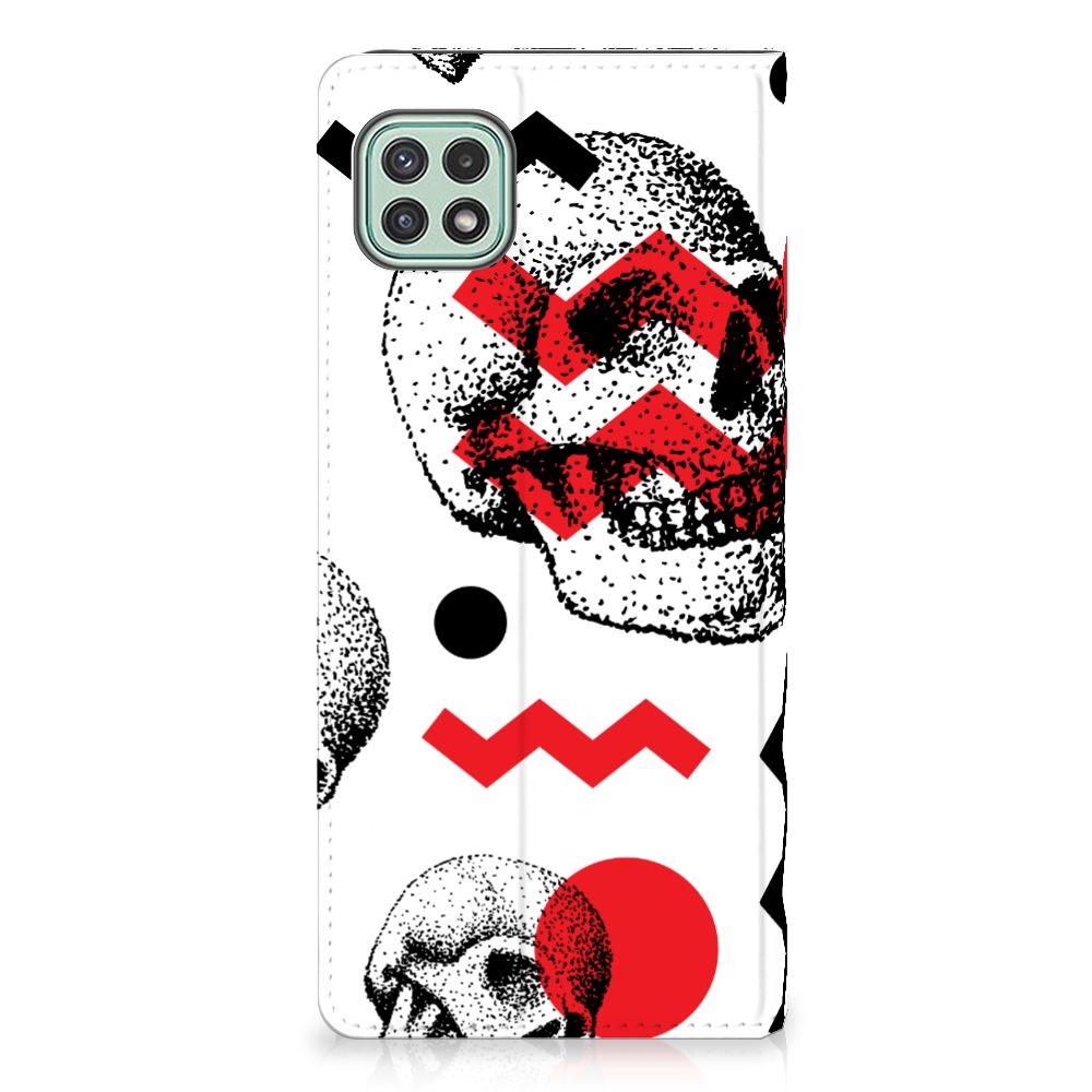 Mobiel BookCase Samsung Galaxy A22 5G Skull Red