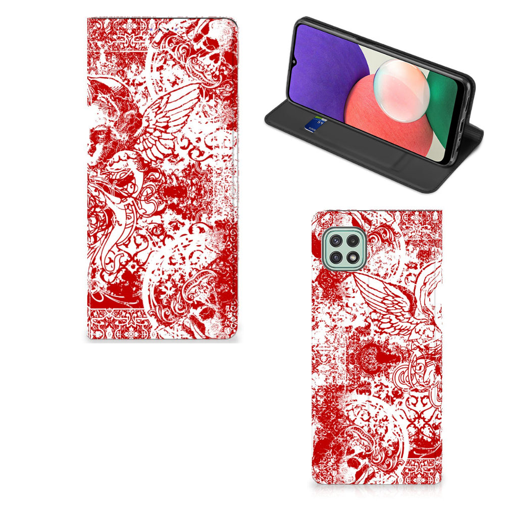 Mobiel BookCase Samsung Galaxy A22 5G Angel Skull Rood