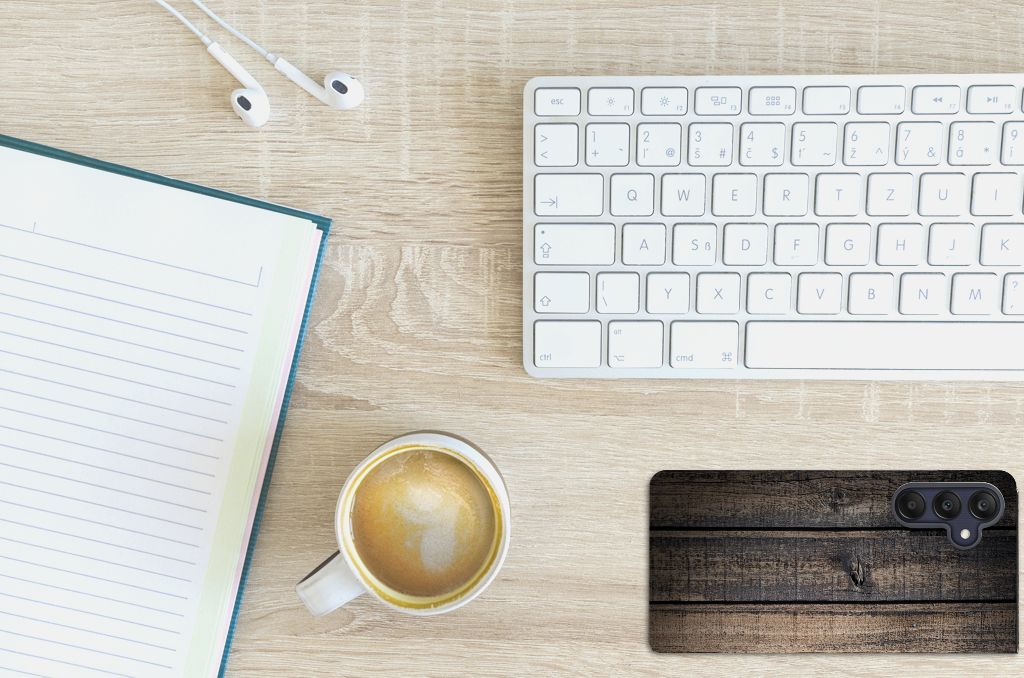 Samsung Galaxy A25 Stevig Telefoonhoesje Donker Hout