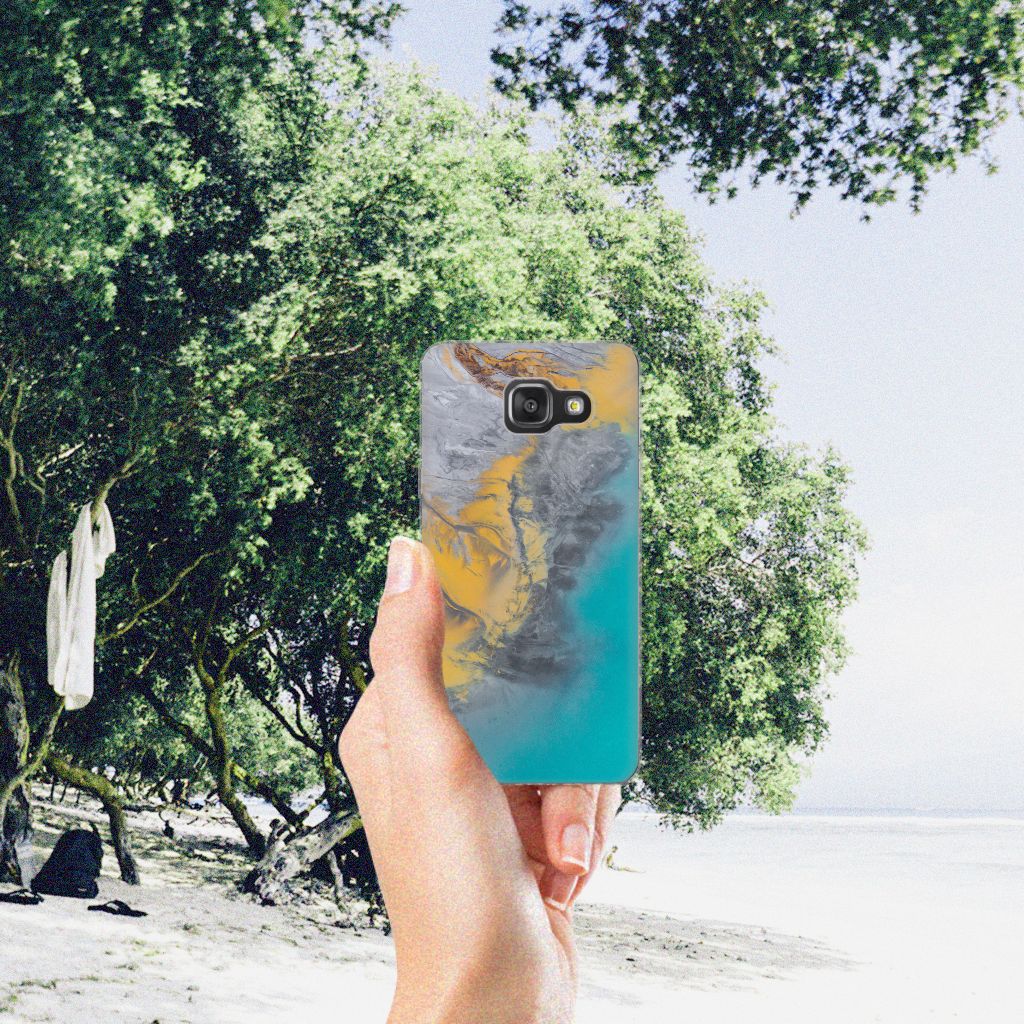 Samsung Galaxy A3 2016 TPU Siliconen Hoesje Marble Blue Gold