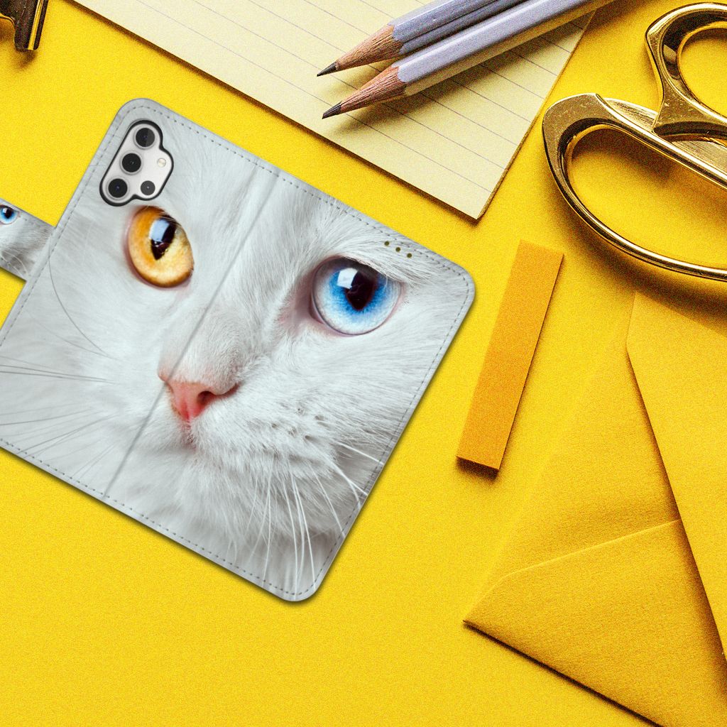 Samsung Galaxy A32 4G Telefoonhoesje met Pasjes Witte Kat