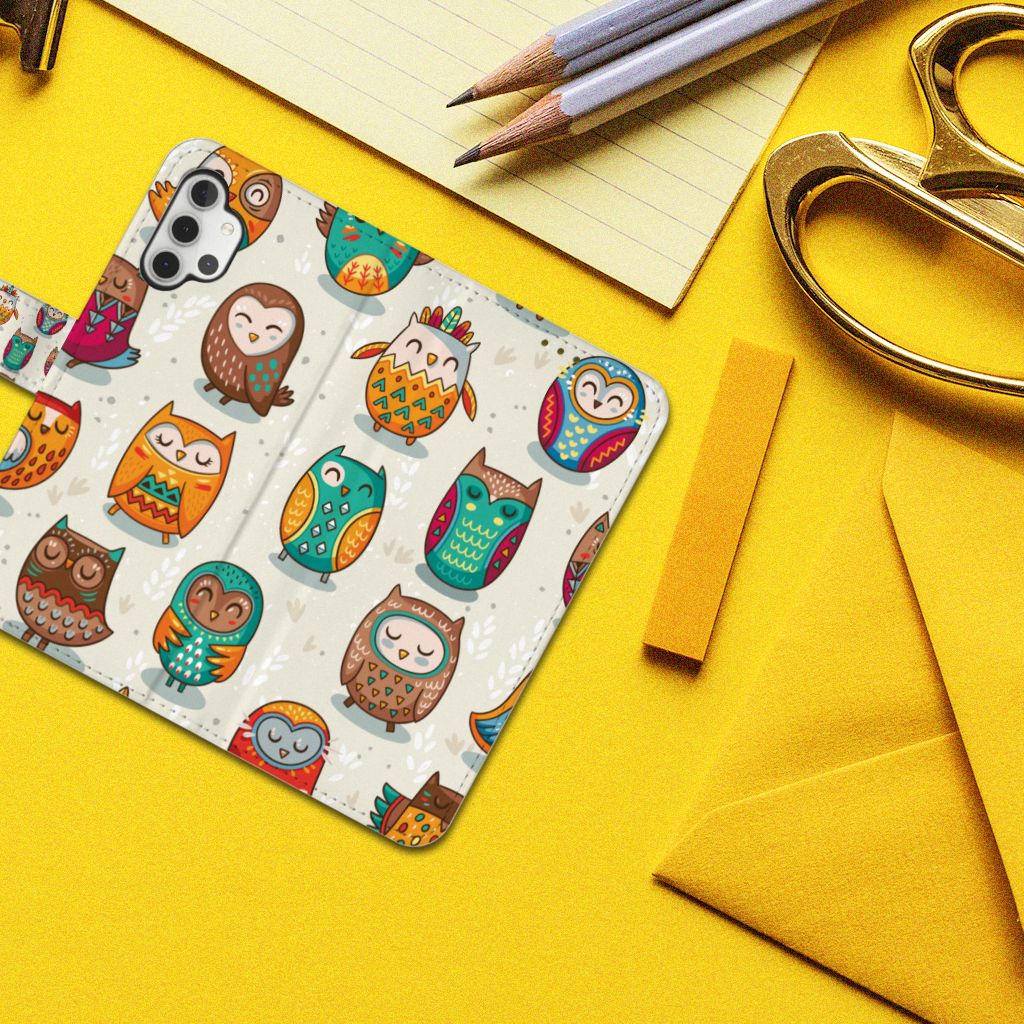 Samsung Galaxy A32 4G Telefoonhoesje met Pasjes Vrolijke Uilen
