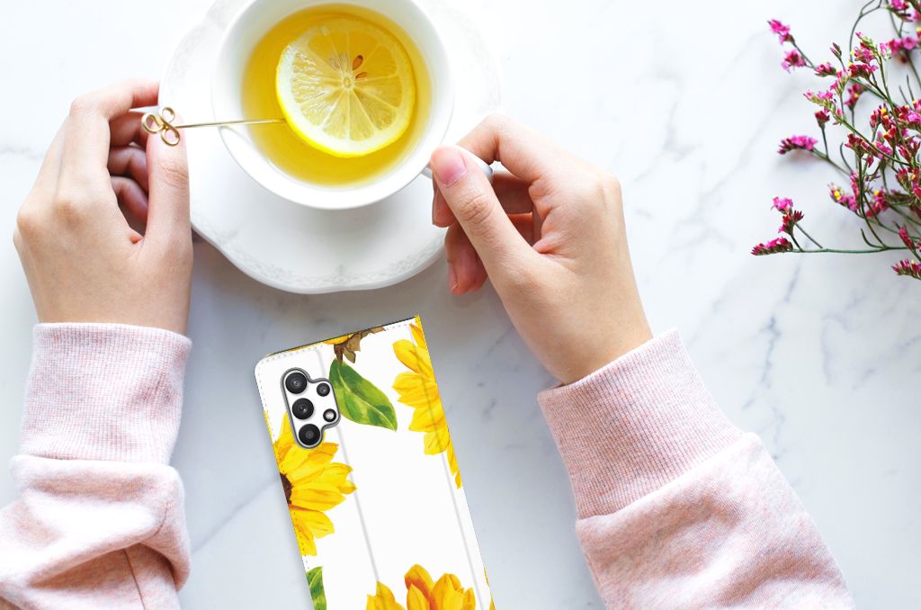 Smart Cover voor Samsung Galaxy A32 4G | A32 5G Enterprise Editie Zonnebloemen