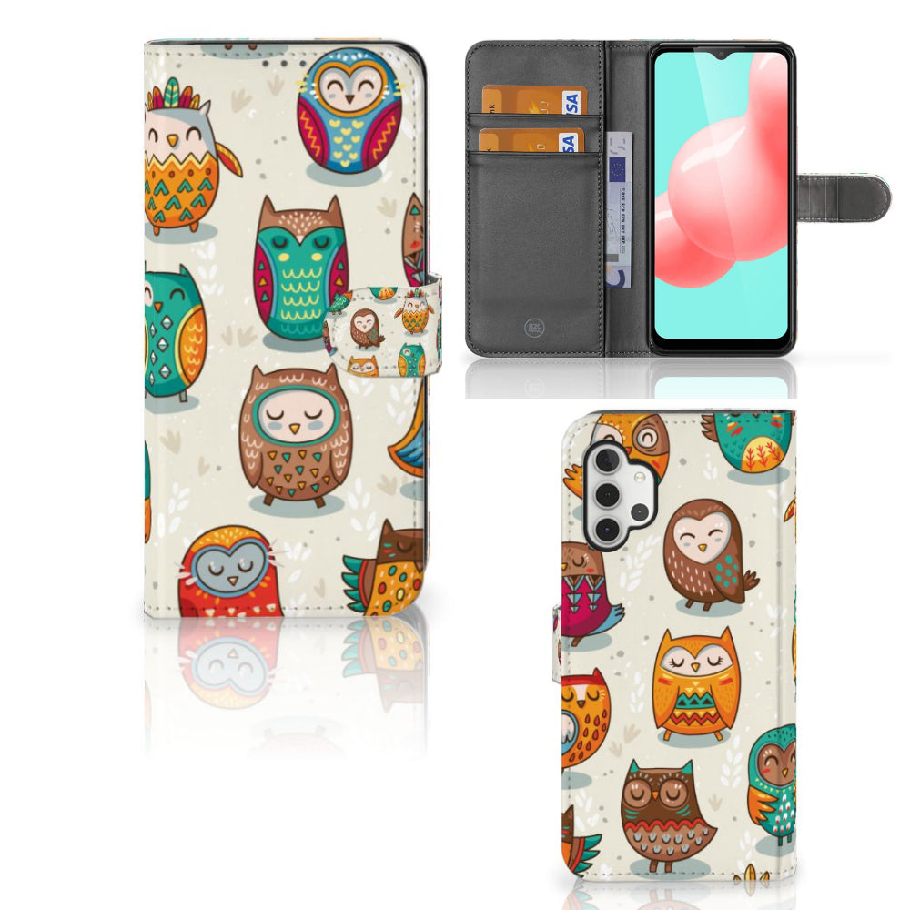 Samsung Galaxy A32 5G Telefoonhoesje met Pasjes Vrolijke Uilen