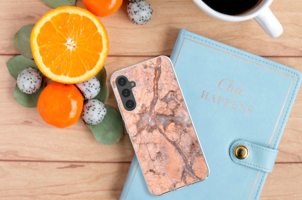 Samsung Galaxy A34 TPU Siliconen Hoesje Marmer Oranje