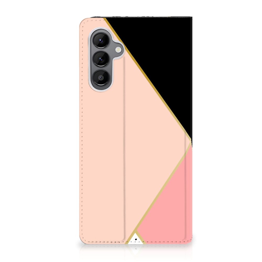 Samsung Galaxy A34 Stand Case Zwart Roze Vormen