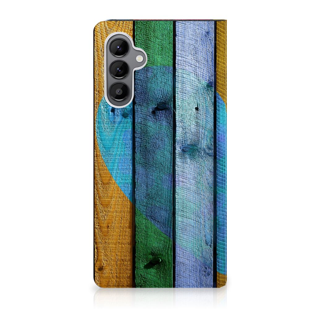 Samsung Galaxy A34 Book Wallet Case Wood Heart - Cadeau voor je Vriend