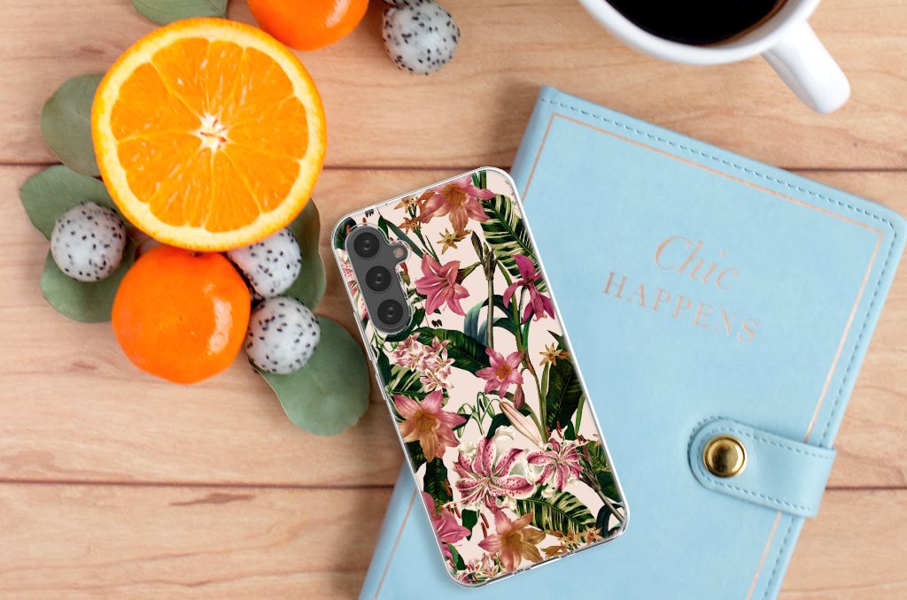Samsung Galaxy A34 TPU Hoesje Pauw met Bloemen