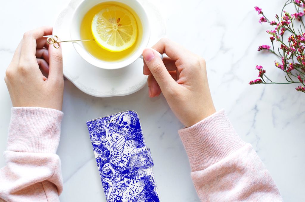 Telefoonhoesje met Naam Samsung Galaxy A40 Angel Skull Blauw