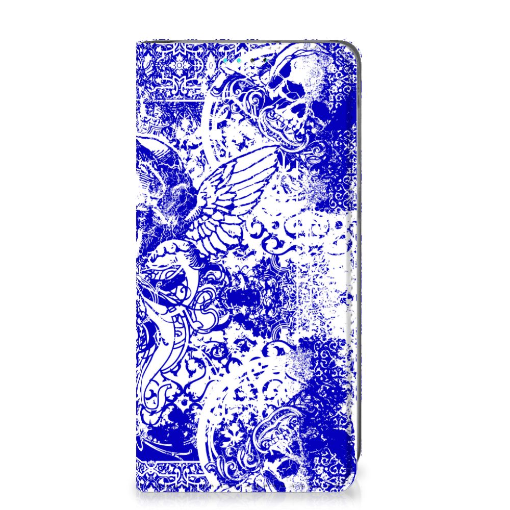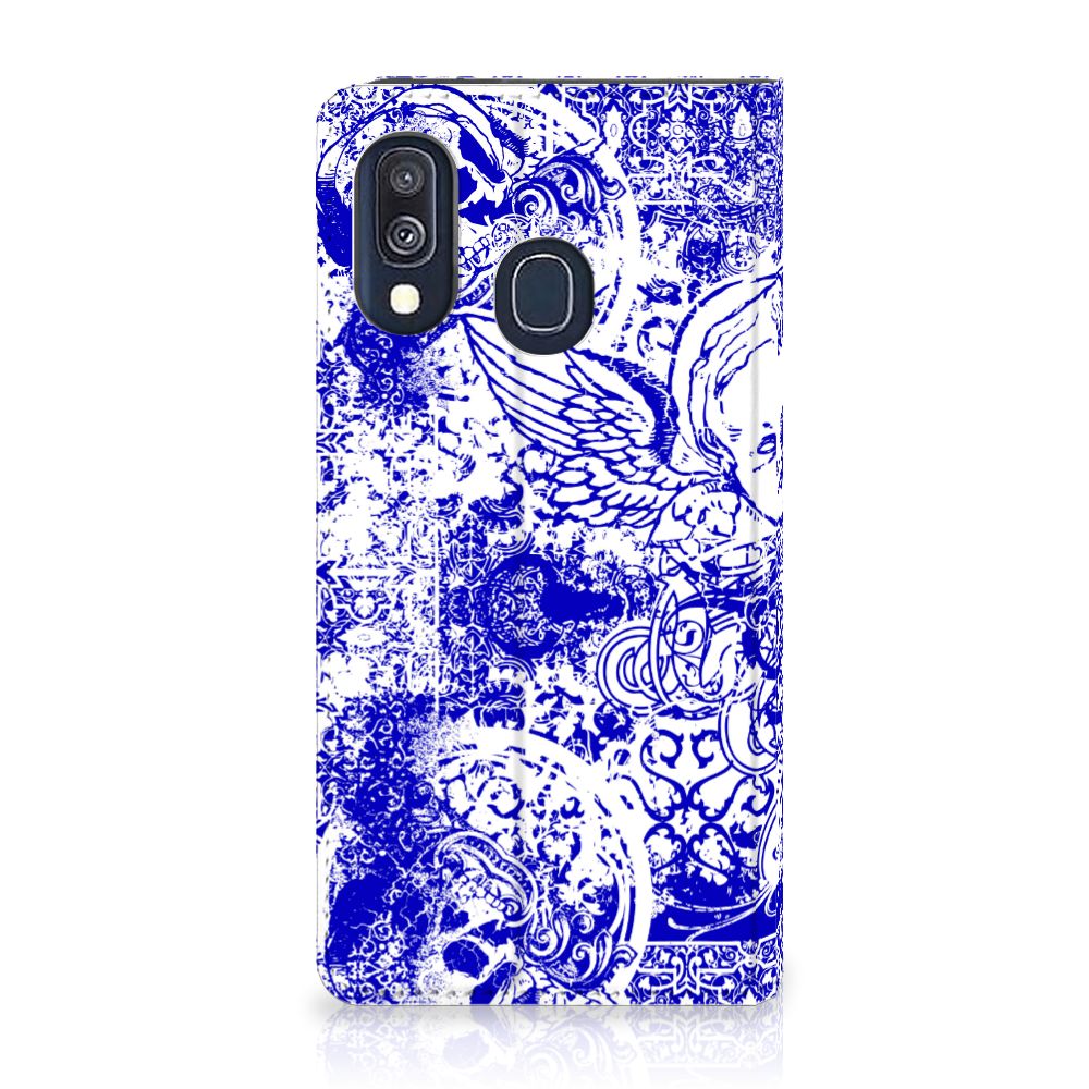 Mobiel BookCase Samsung Galaxy A40 Angel Skull Blauw