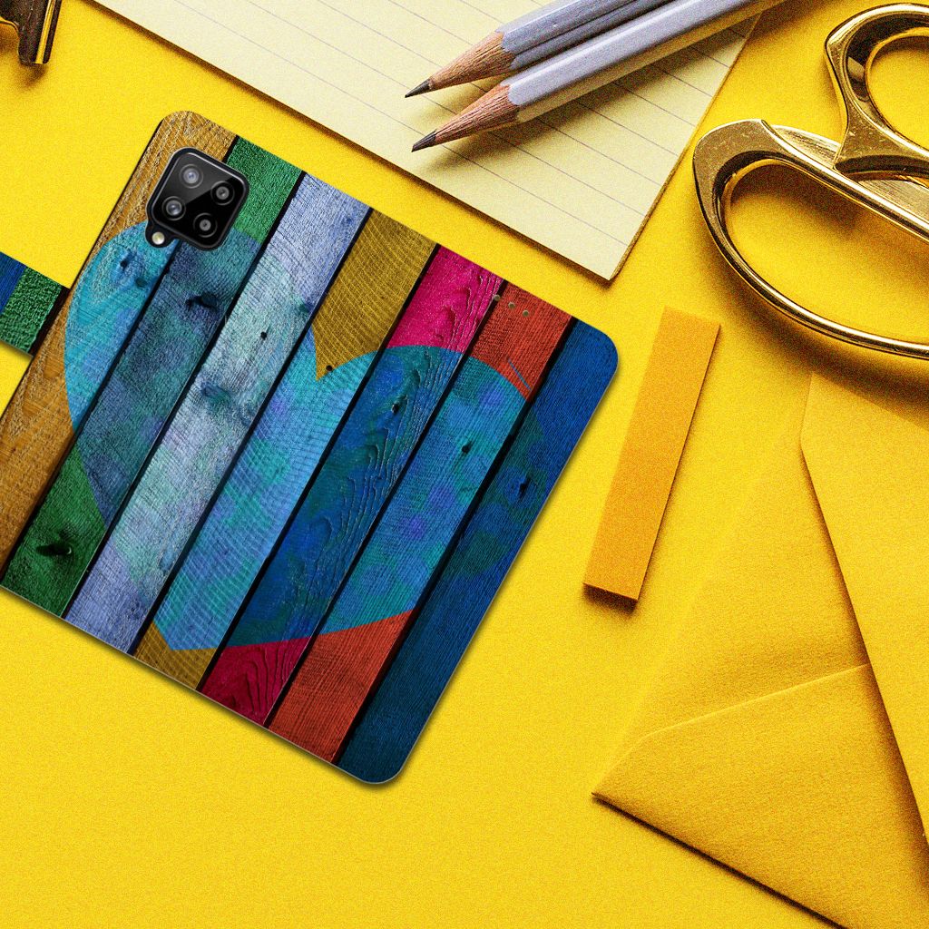 Samsung Galaxy A42 5G Book Style Case Wood Heart - Cadeau voor je Vriend
