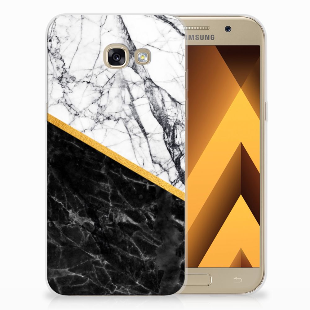 Samsung Galaxy A5 2017 TPU Siliconen Hoesje Marmer Wit Zwart - Origineel Cadeau Man