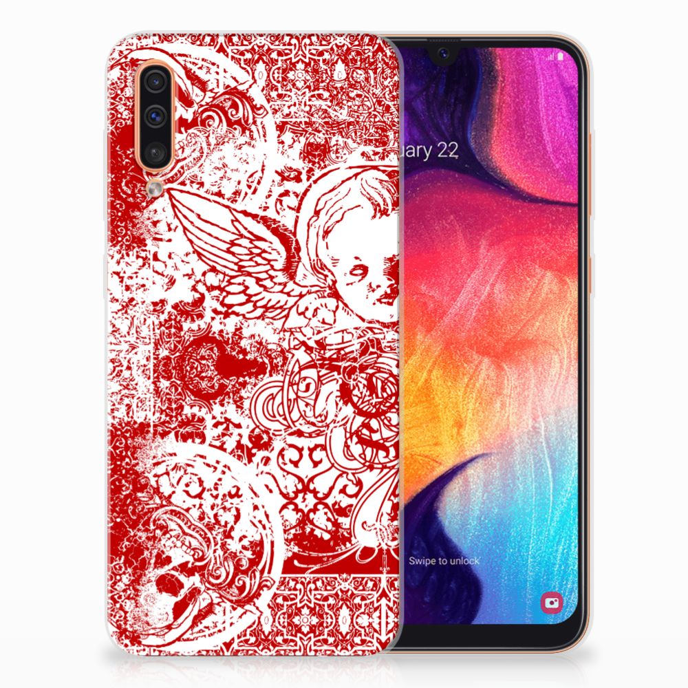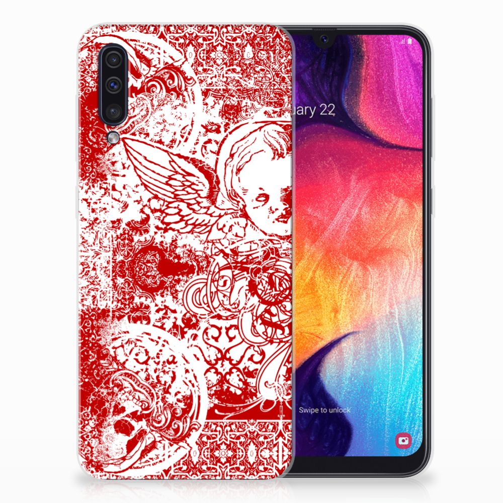 Silicone Back Case Samsung Galaxy A50 Angel Skull Rood