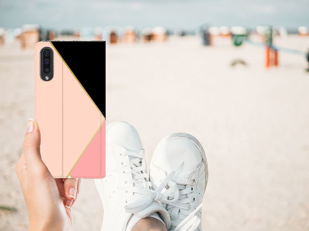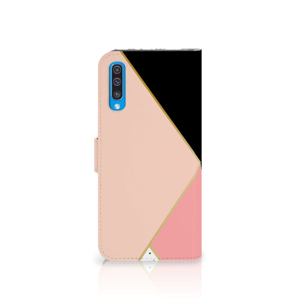 Samsung Galaxy A50 Book Case Zwart Roze Vormen