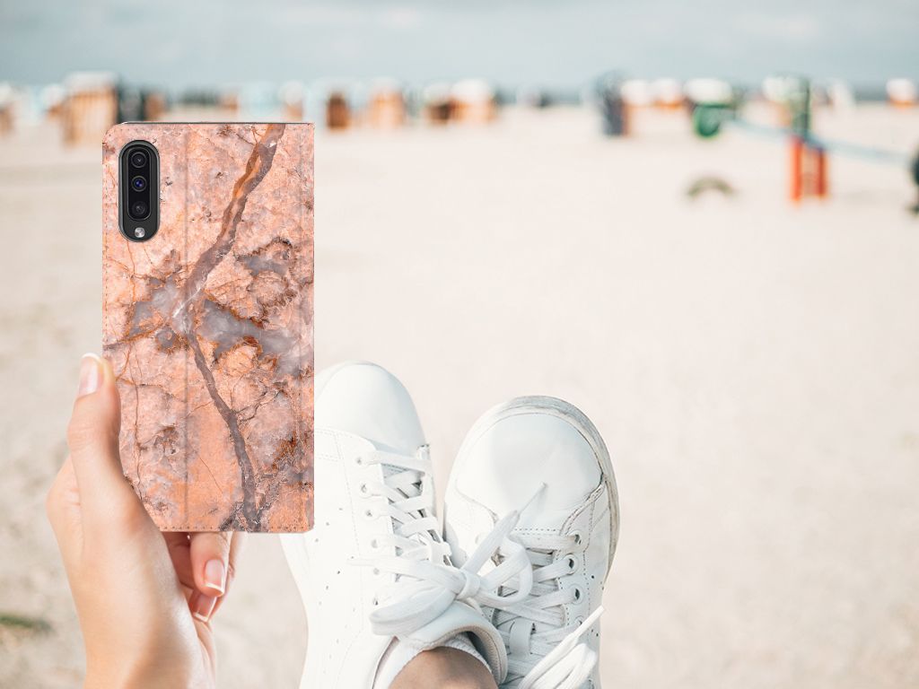 Samsung Galaxy A50 Standcase Marmer Oranje