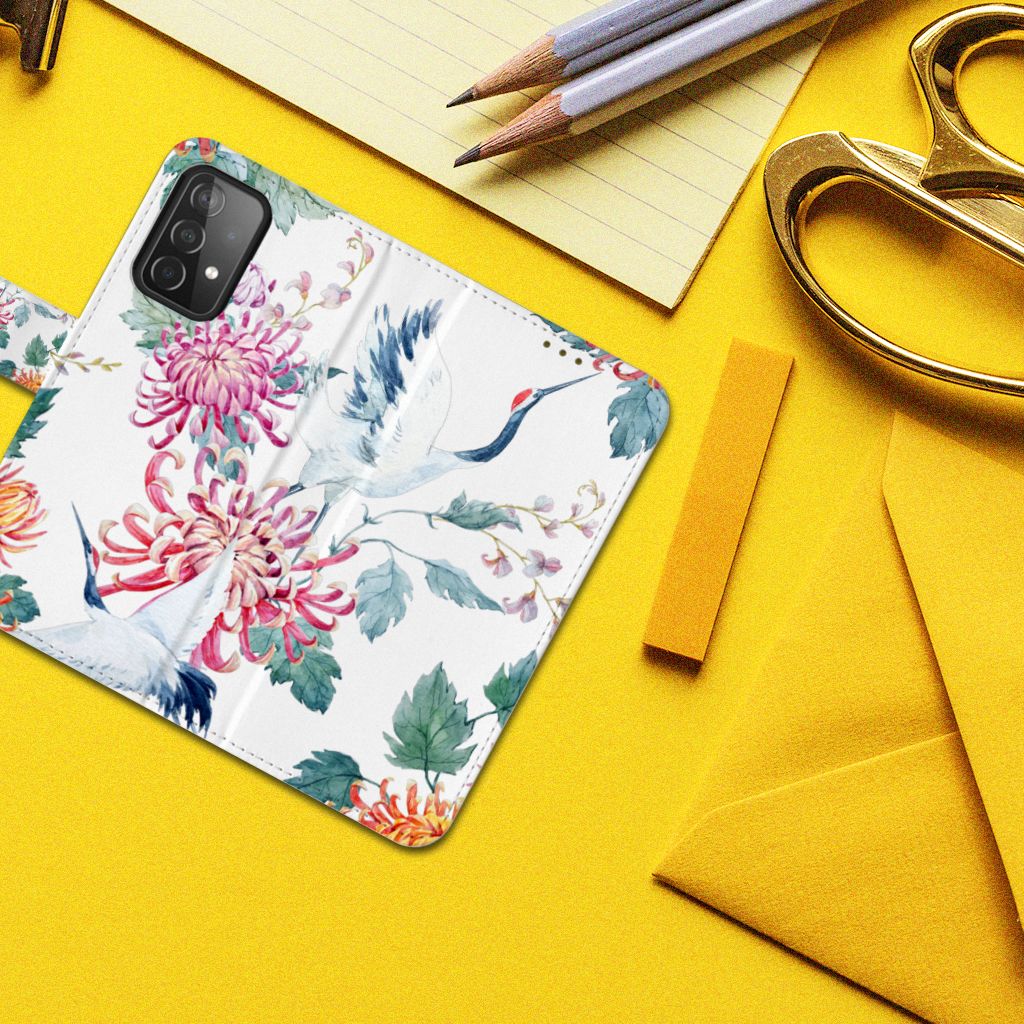 Samsung Galaxy A52 Telefoonhoesje met Pasjes Bird Flowers