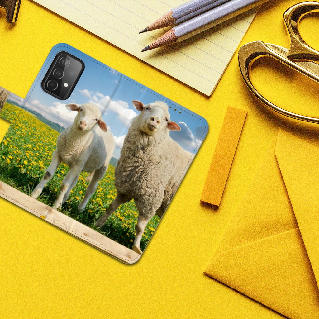 Samsung Galaxy A52 Telefoonhoesje met Pasjes Schaap en Lammetje