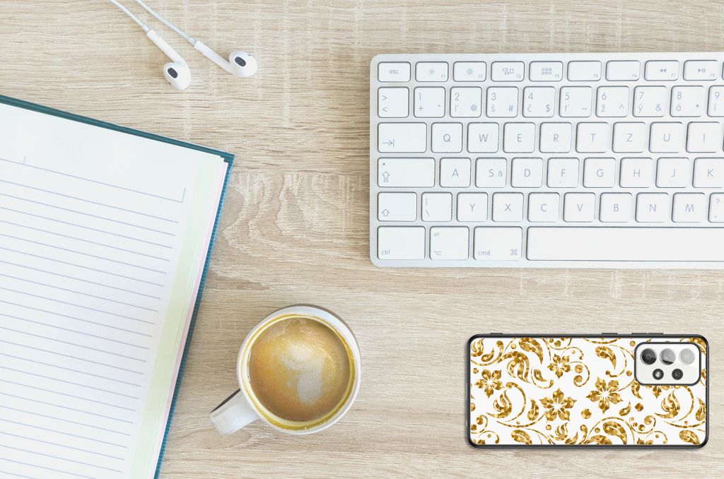 Samsung Galaxy A52 | A52s (5G/4G) Bloemen Hoesje Gouden Bloemen