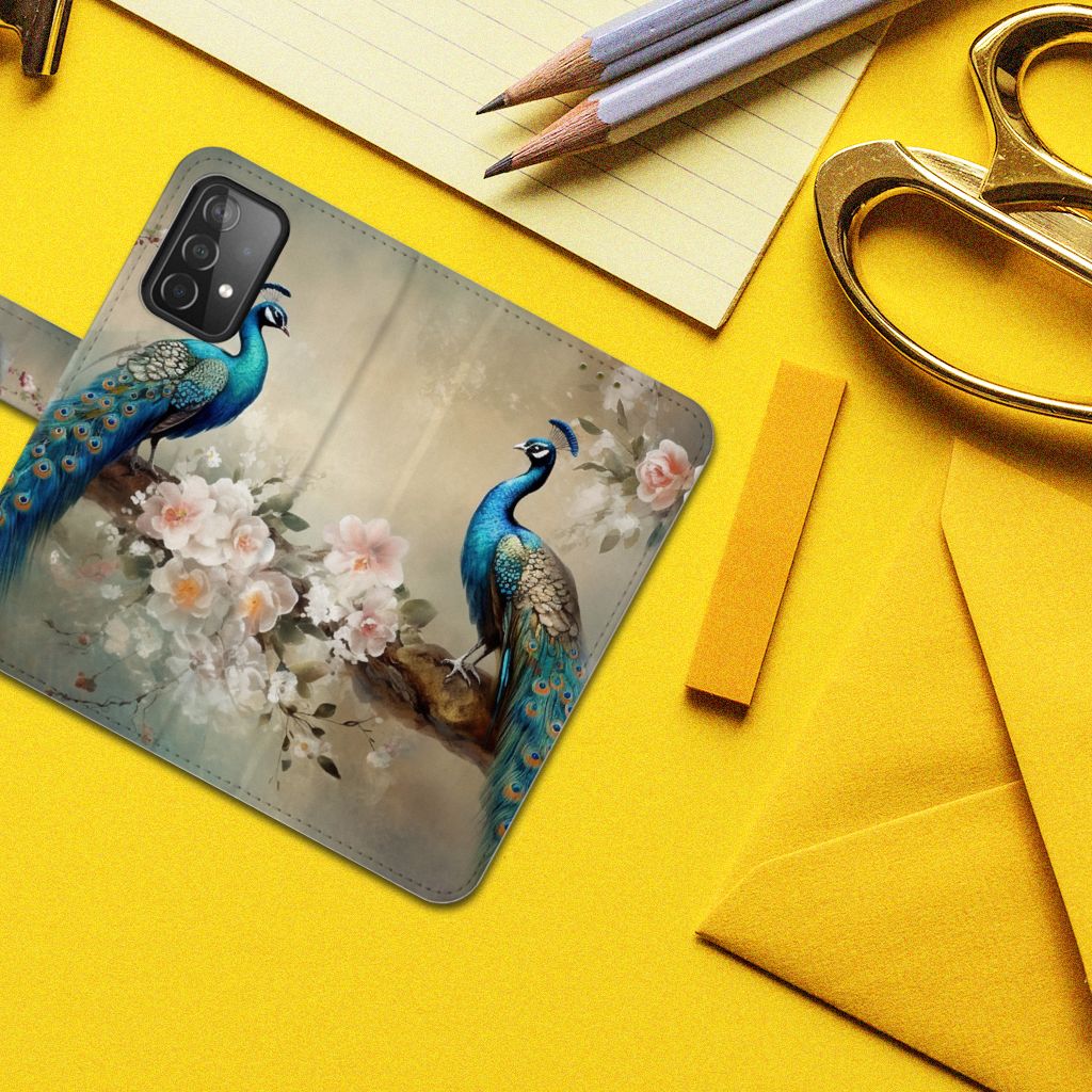 Telefoonhoesje met Pasjes voor Samsung Galaxy A52 Vintage Pauwen