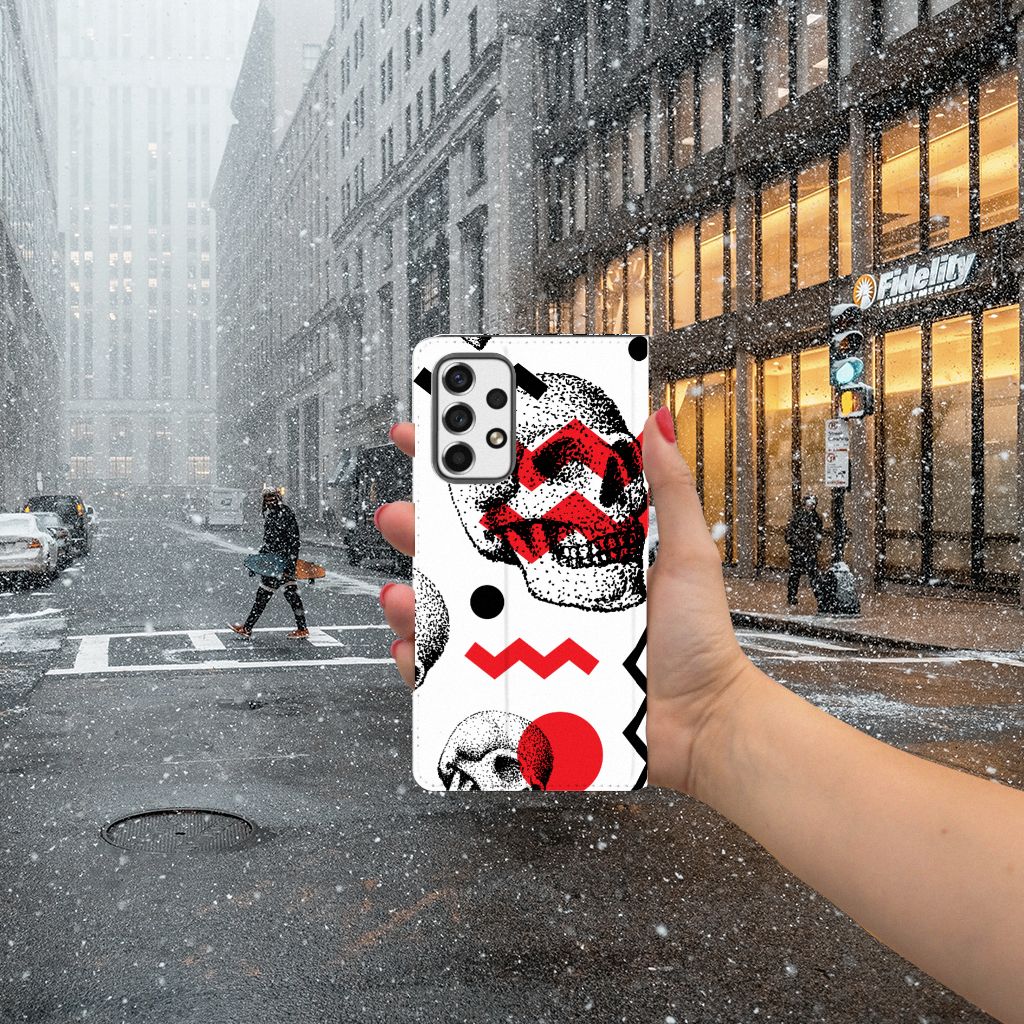 Mobiel BookCase Samsung Galaxy A53 Skull Red