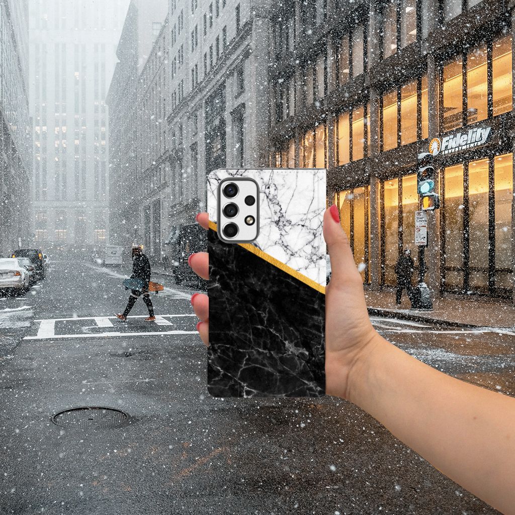 Samsung Galaxy A53 Standcase Marmer Wit Zwart - Origineel Cadeau Man